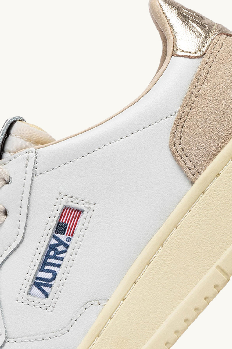 The model is completed with cotton laces, a tongue adorned with a label, and a gold leather heel tab highlighted by the brand’s iconic logo.