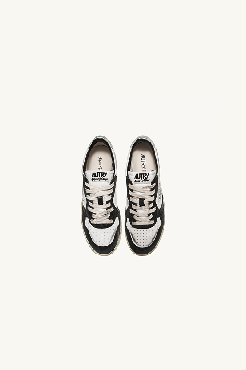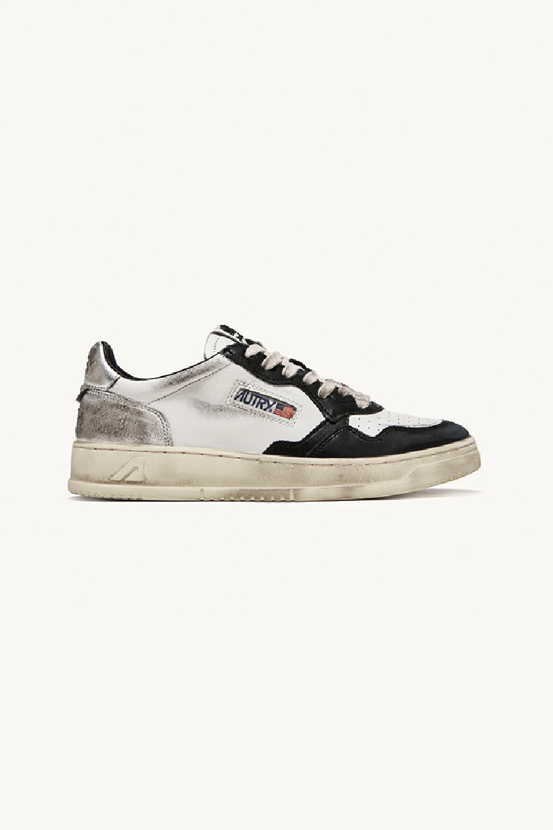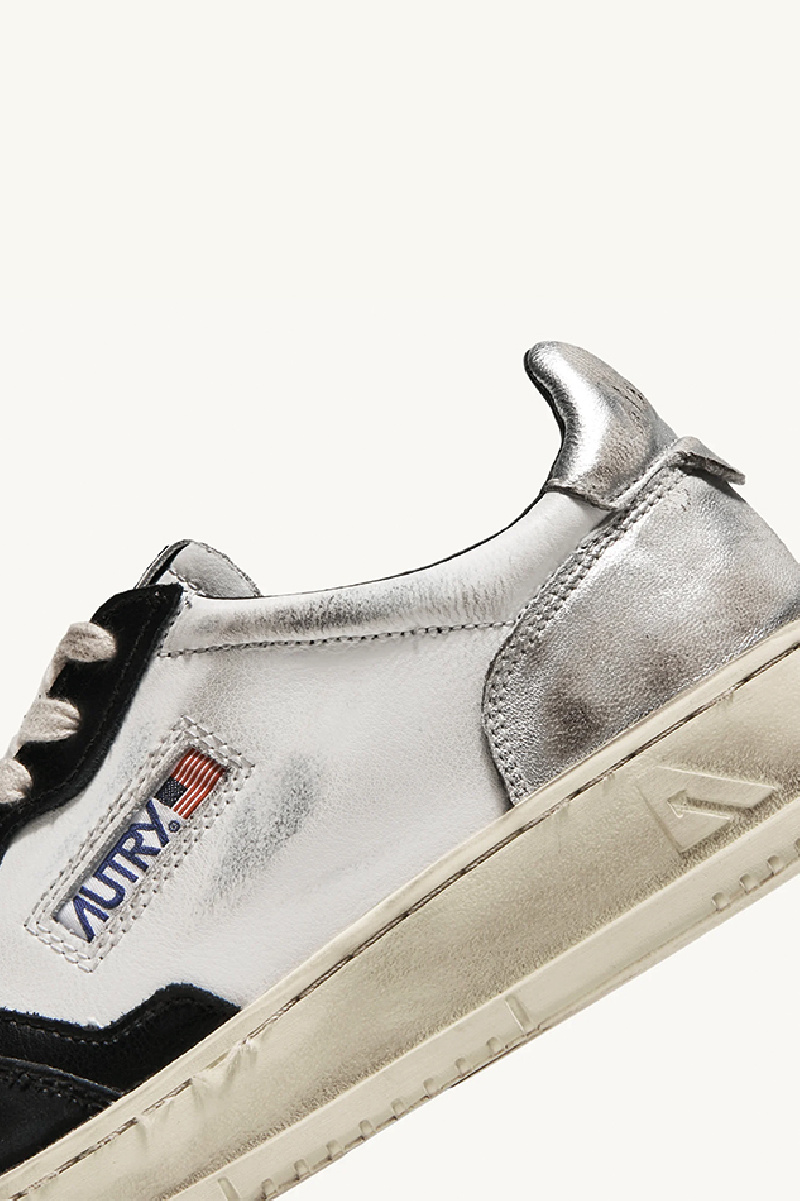 Autry sneakers, Super Vintage Low model, in white, black and silver leather with used effect.
