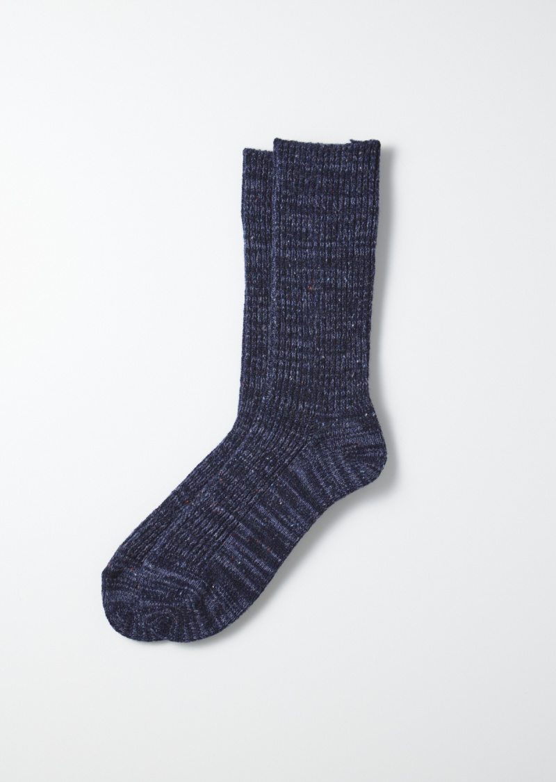 ROTOTO knitted sock in recycled cotton. Navy blue striped and heather pattern. Suitable for all seasons.