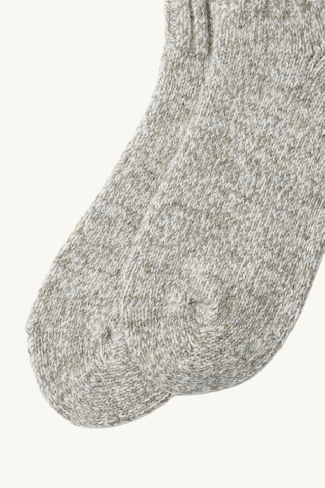 High ROTOTO wool socks, grey and green heather, ribbed mesh, comfortable.