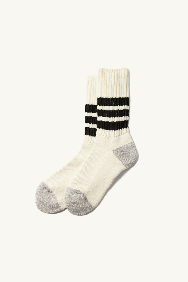 White socks in Rototo striped cotton, contrasting stripes and toes, ribbed finish, warm and comfortable, slip-on.