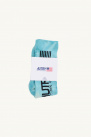 Blue tie and dye pattern Autry socks, high rise, mixed, black logo printed "Autry Action Wear", elastic ankles, ribbed edges.