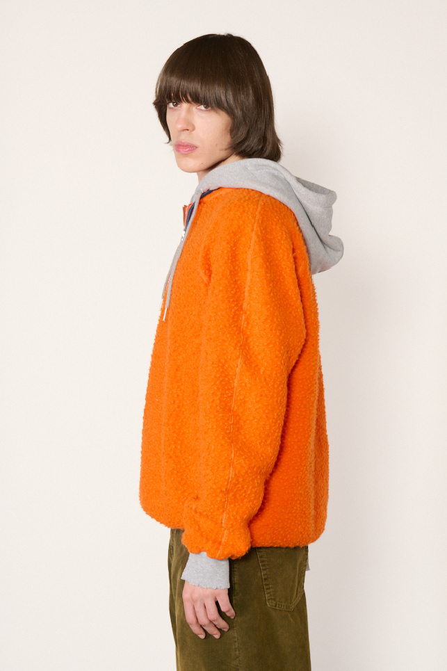 Orange wool pile hoodie from Stockholm Surfboard Club.