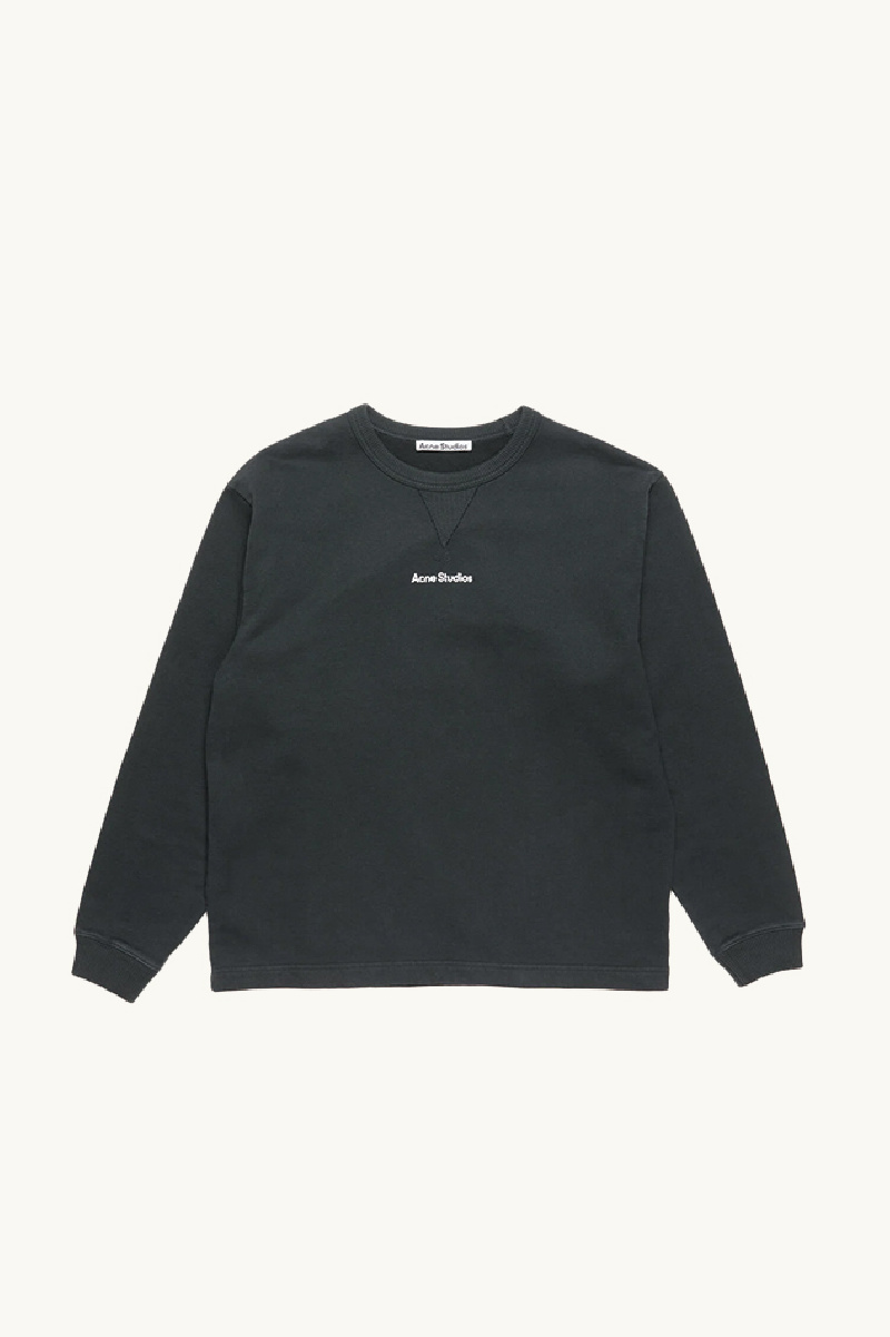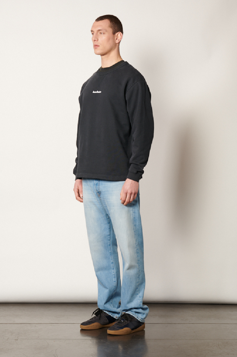 Black crew neck sweater by Acne Studios in organic cotton with ribbed neckline, cuffs and hem.