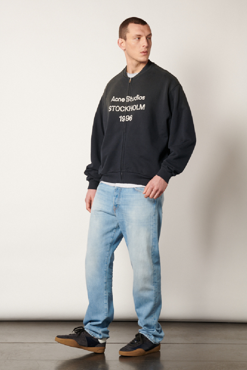 This zip-up sweatshirt, black is crafted from a fleece cotton blend with a piece-dyed finish. It features the Acne Studios 1996 logo and worn-in rib detailing. It features side pockets, as well as ribbed trim at the collar, cuffs and hem. Its relaxed, unisex cut ensures optimum comfort. Made from organic cotton and recycled polyester, it combines style and eco-responsibility.