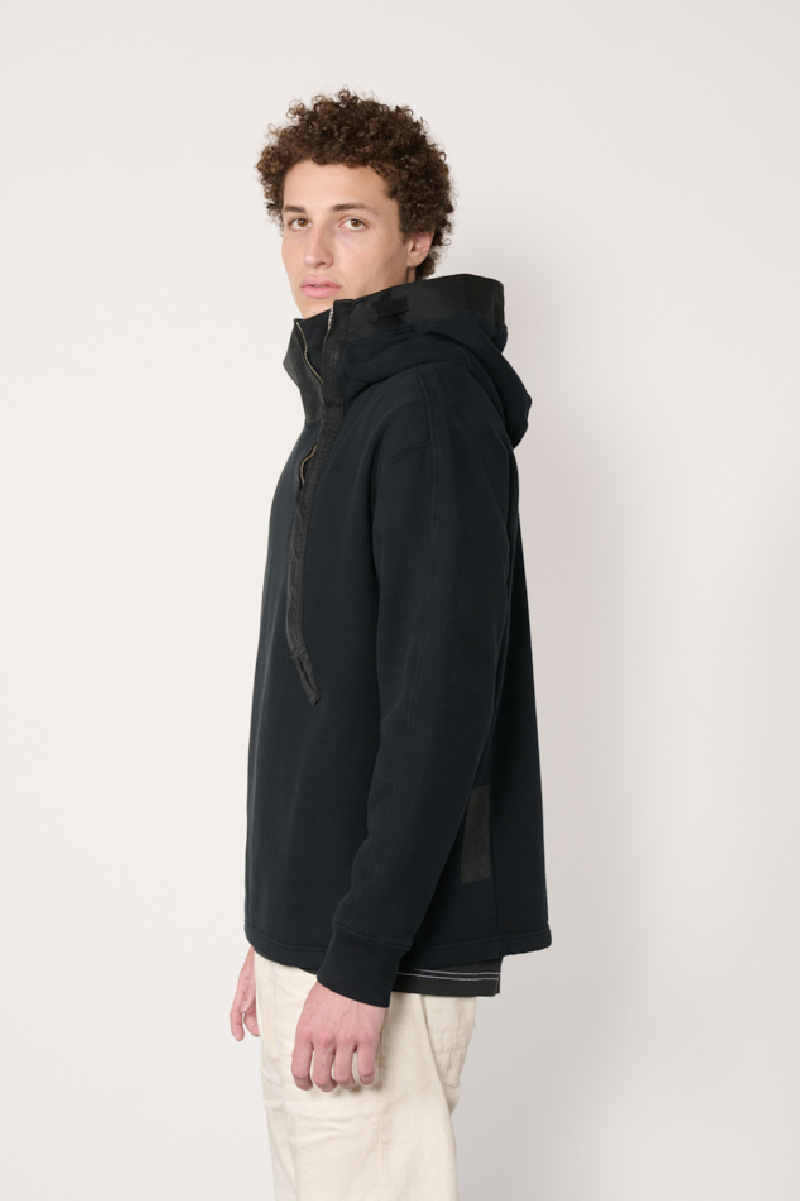 The design also plays with material contrasts: a predominantly cotton base, houtlined with strips of OJJ (Original Japanese Jersey), a unique blend of polyester and nylon, along the closure and collar.
