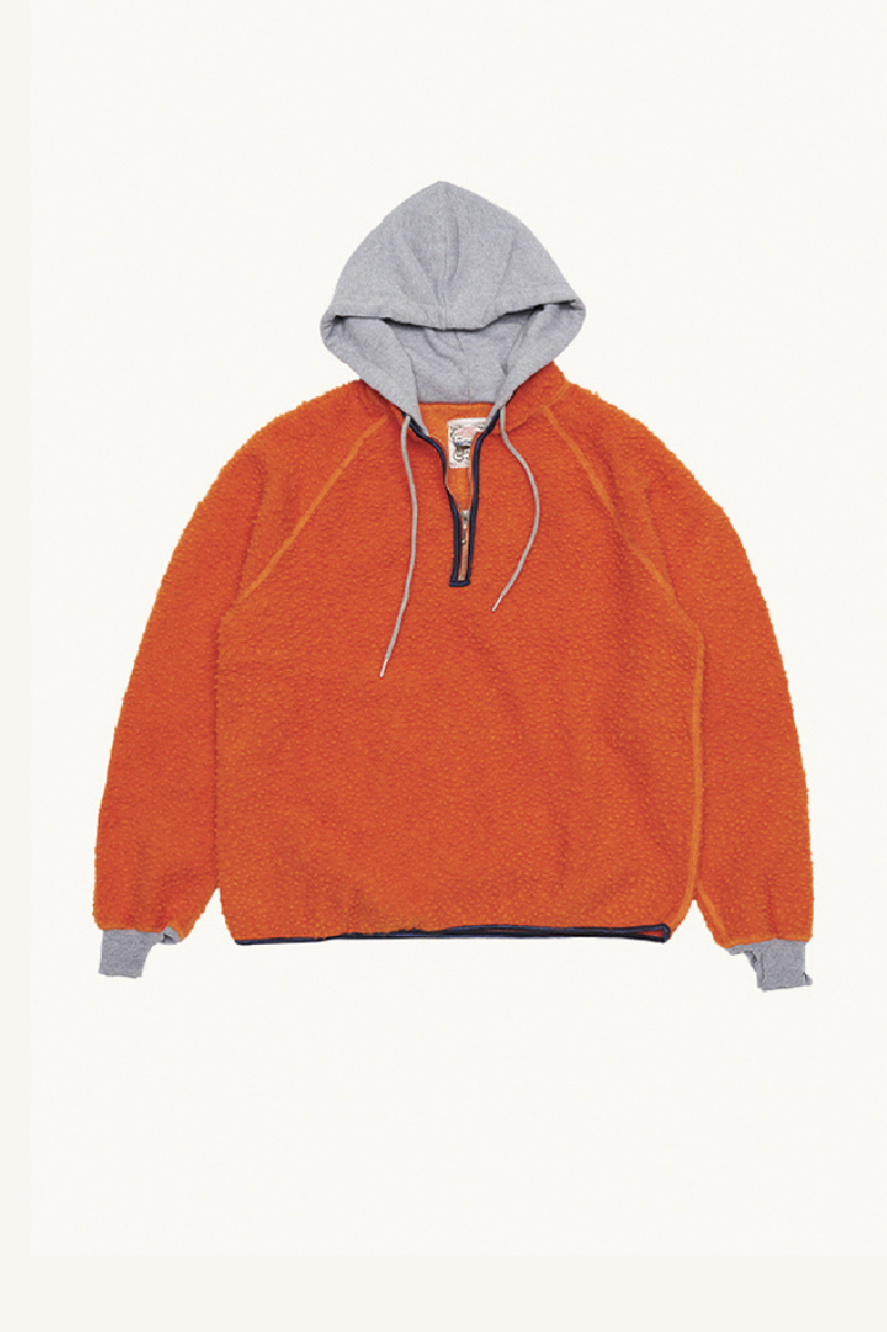 Orange wool pile hoodie from Stockholm Surfboard Club.