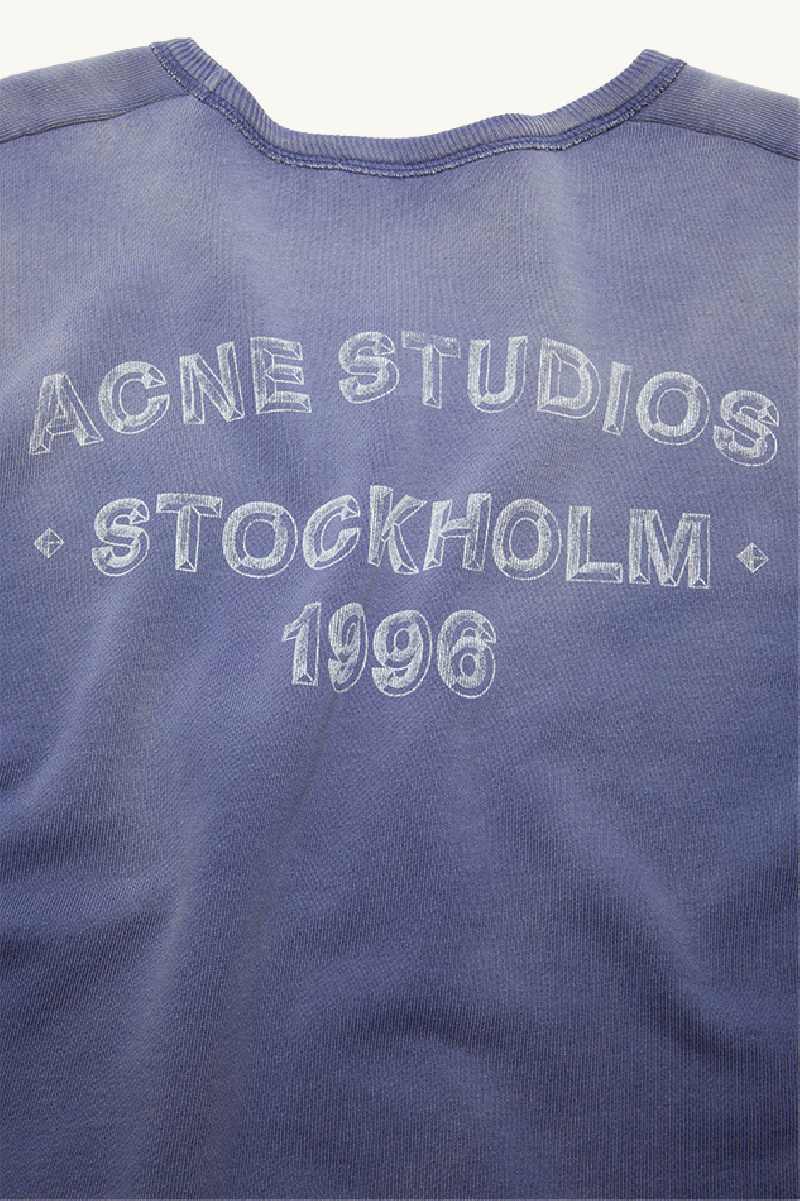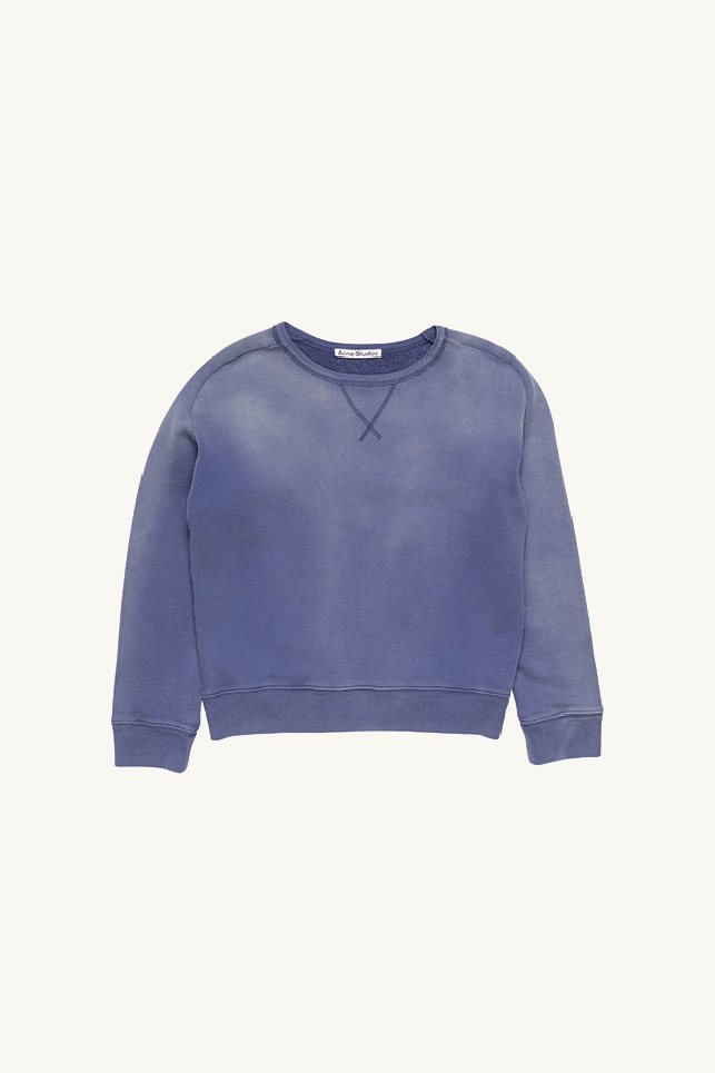 Sweatshirt made of blue cotton fleece with a faded effect, from the brand Acne Studios.