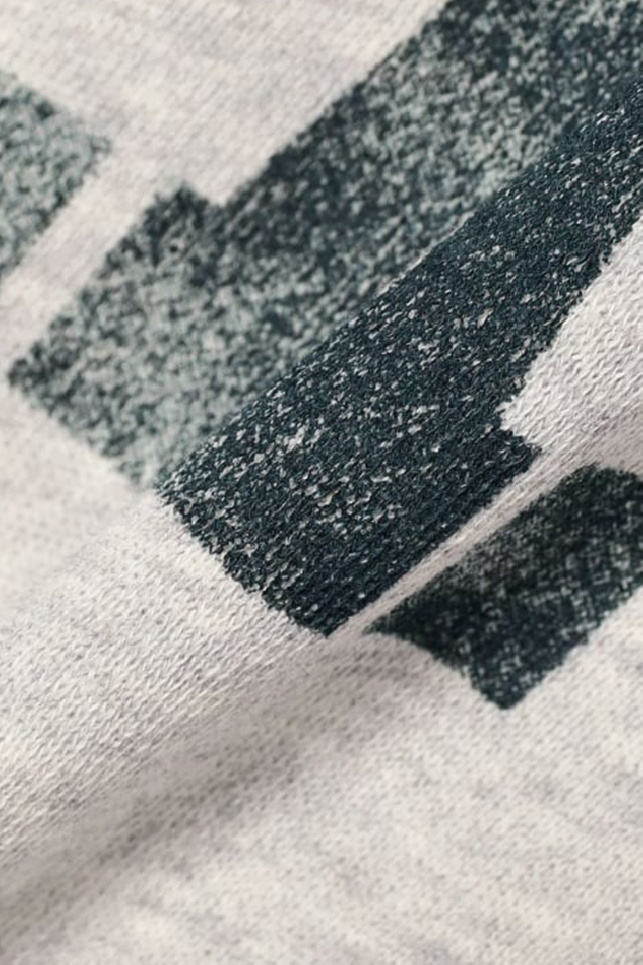 Inspired by vintage tracksuits, it revisits their codes: open-chest College pattern forming a deep neckline, revisited raglan sleeves in wide armholes, and raw edge finishes for a mastered raw effect.
