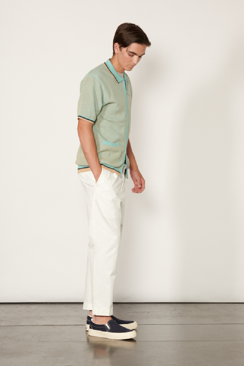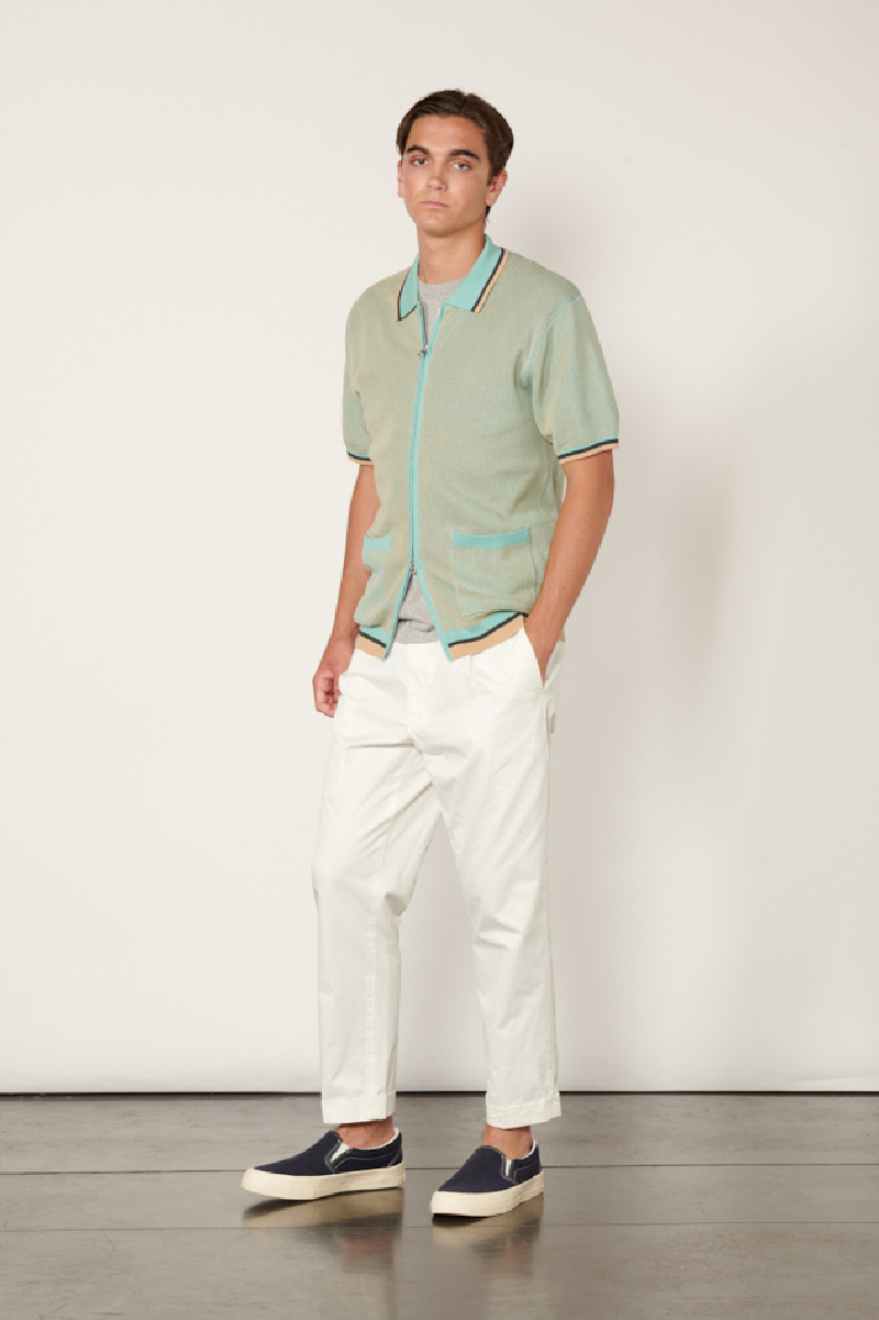Retro-inspired, the polo features a straight cut with a tightened waist, a front zip opening and two front patch pockets.