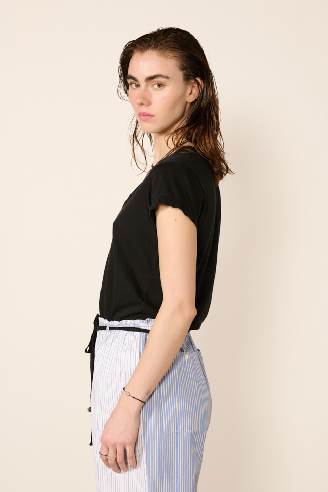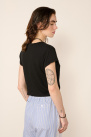 It features a classic fit, a V-neckline, refined short sleeves, and a soft, fluid drape for everyday comfort.