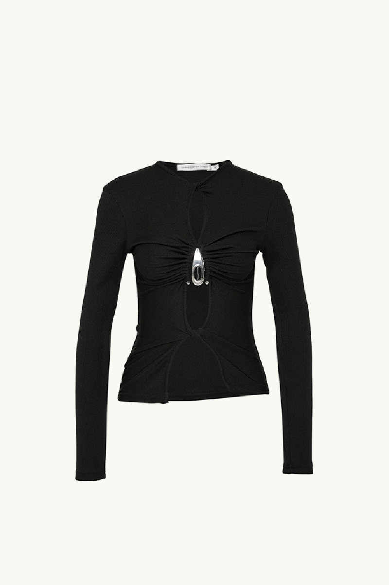 Crystal Pendant Open Twist top in fine black ribbed jersey by Christopher Esber.