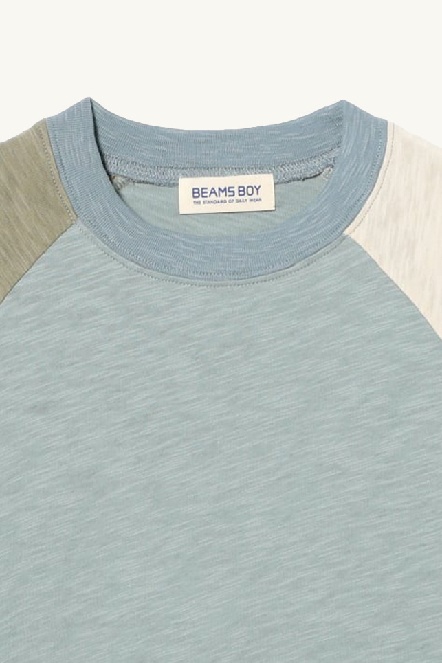 Tricolor short sleeve t-shirt made of premium slub cotton, in blue, green and beige tones, from the brand Beams Boy.