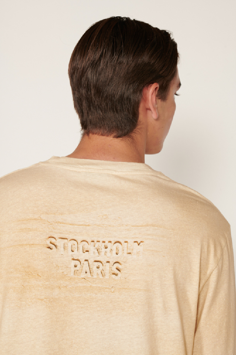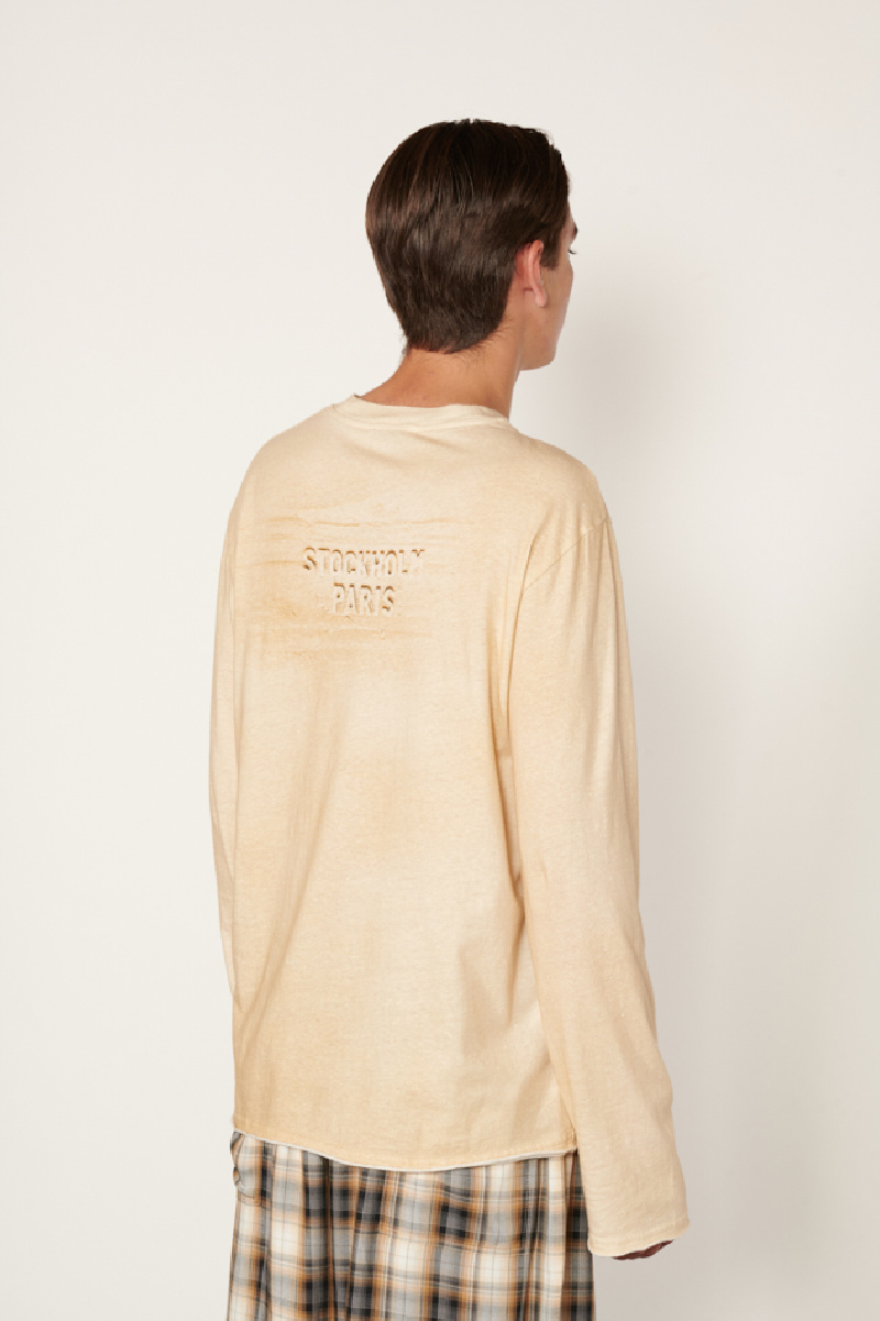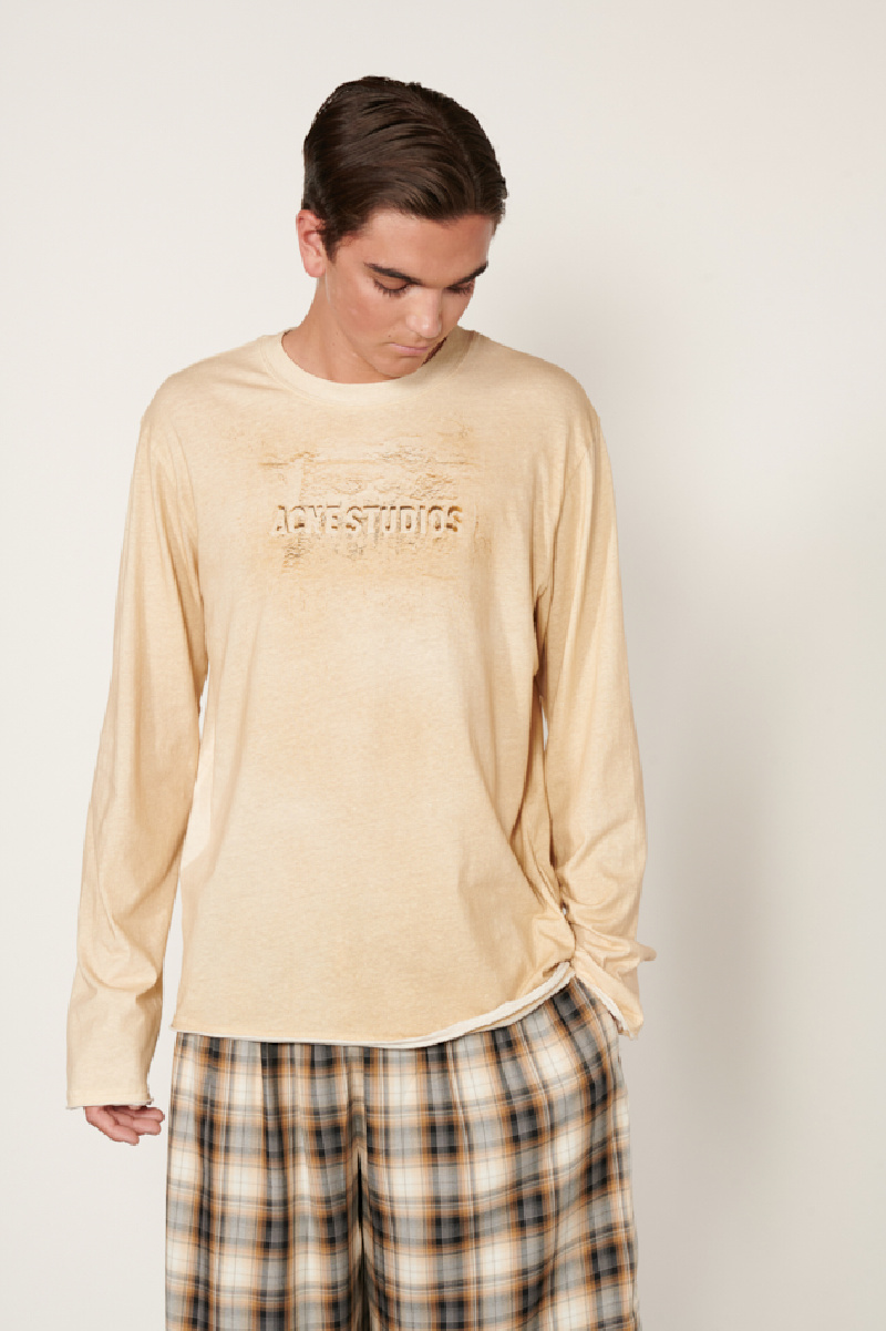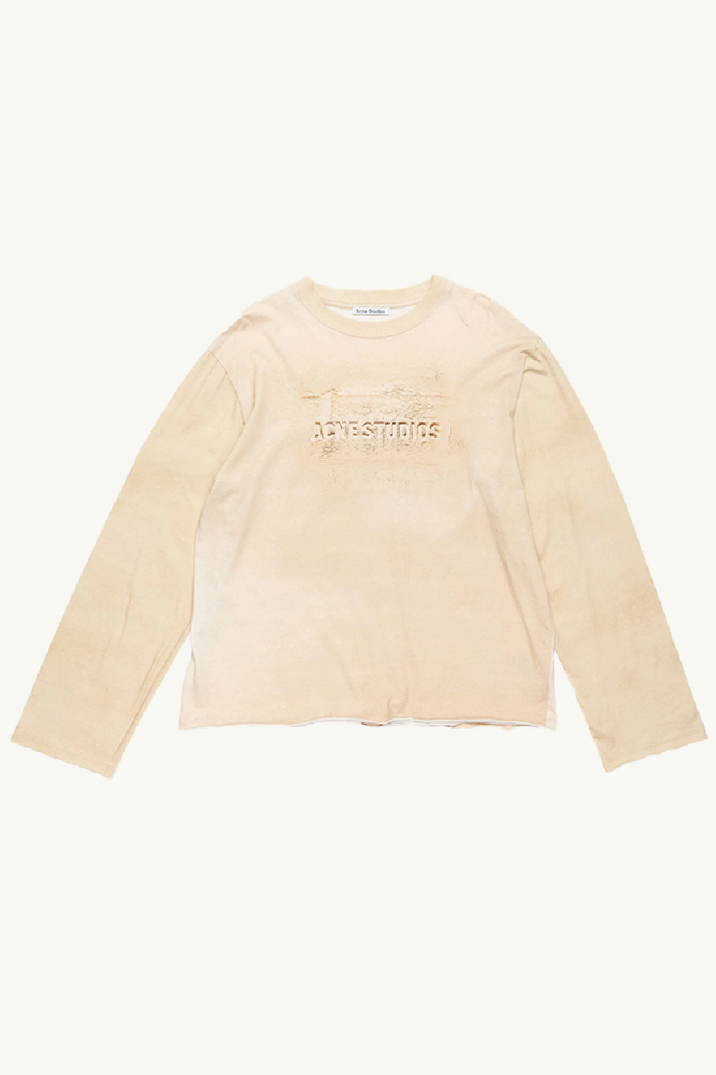 Long-sleeved sand logo t-shirt, made of organic cotton jersey with a vintage finish, from the brand Acne studios.