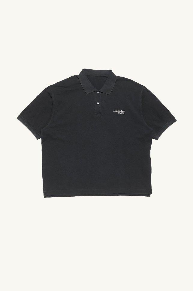 Polo shirt made from slightly faded black cotton by Acne Studios.