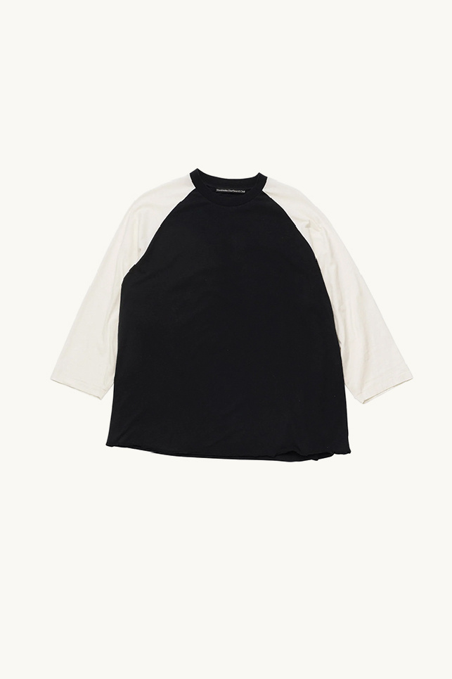 It features a regular waist-length fit, ¾ raglan sleeves, and a contrast neck and sleeves.