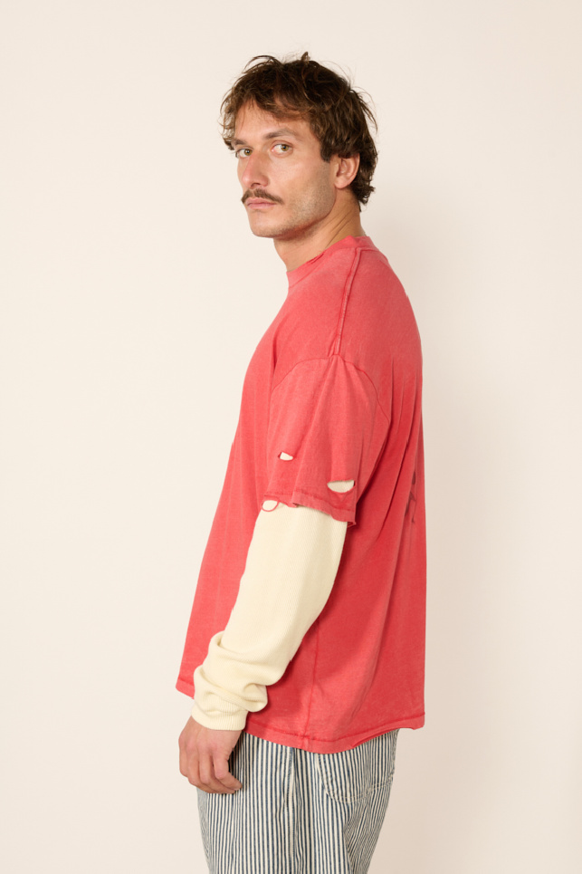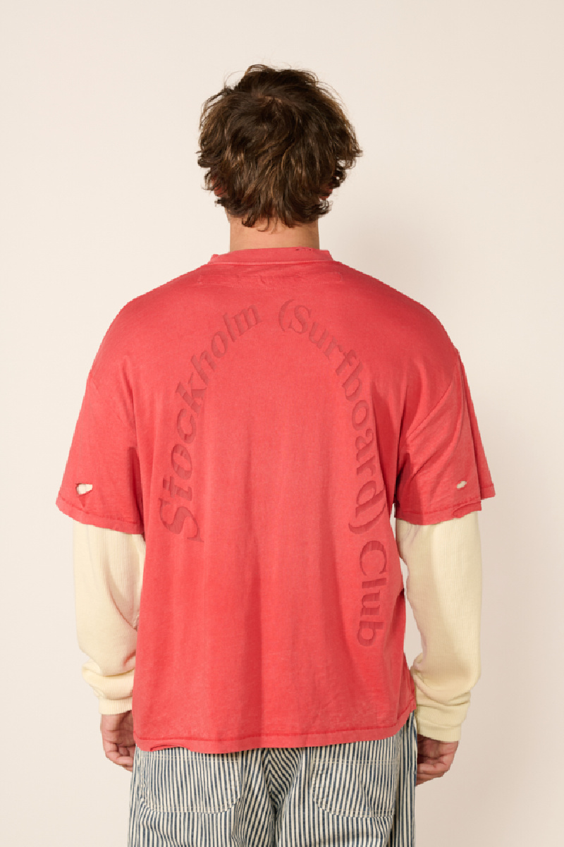 Unisex layered red cotton T-shirt by Stockholm Surfboard Club.