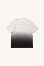 The piece stands out for its gradient dye, transitioning from a lighter blue near the collar to a deeper blue towards the hem.