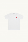 It features a classic silhouette with a crew neckline and is defined by the iconic red heart embroidery on the chest, a signature of the brand.