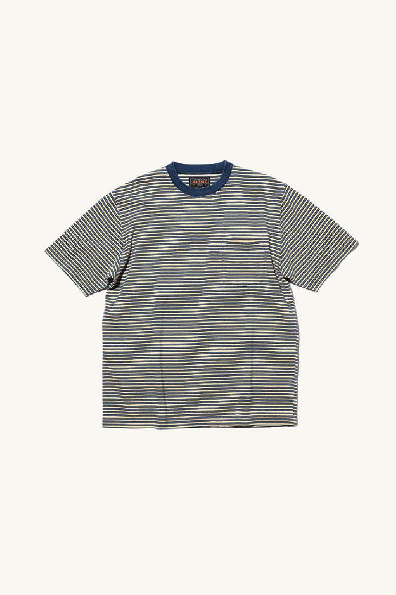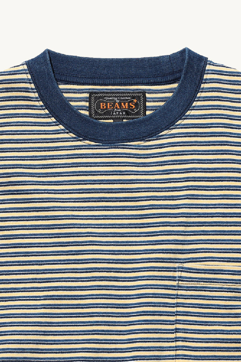 Short-sleeved T-shirt made of soft cotton in off white with indigo stripes, from the brand Beams Plus.