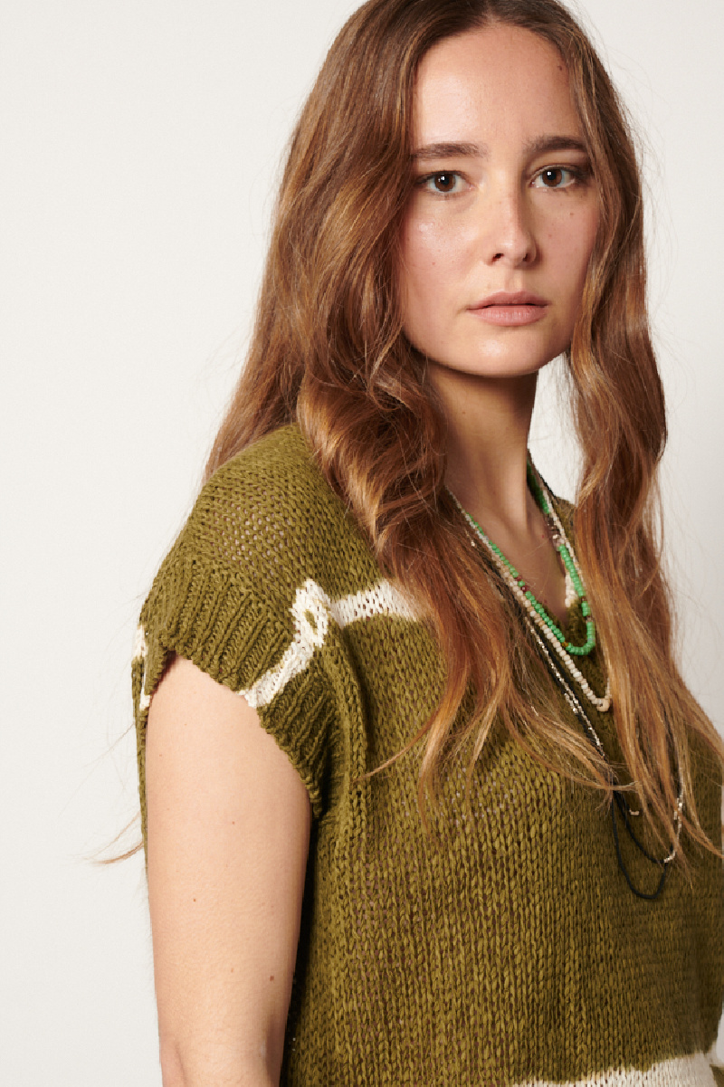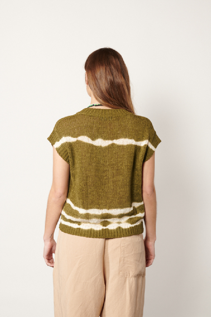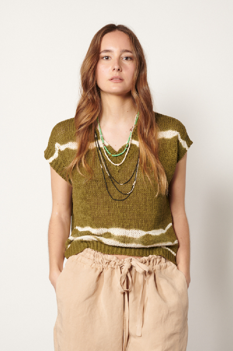 Lightly openwork knit sweater, made of army cotton blend with a handmade tie and dye treatment, by the brand Roberto Collina.