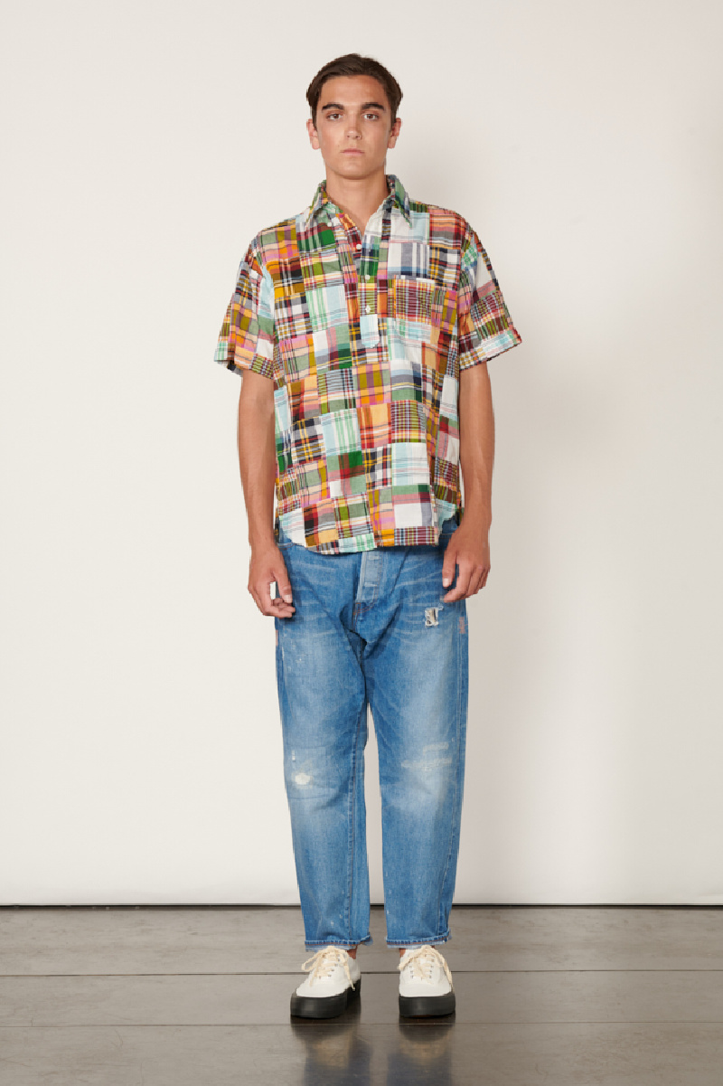 Short-sleeved shirt made from patchwork Madras fabric in multicolored cotton, by Beam +.
