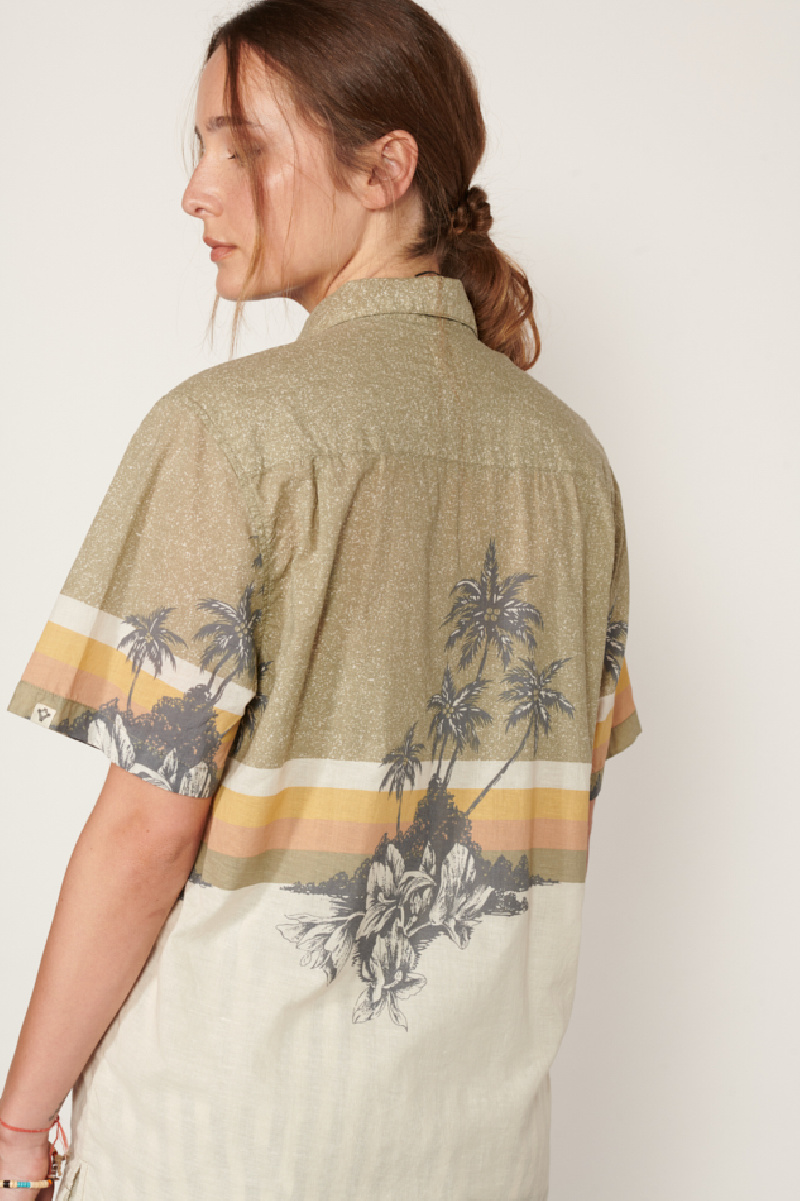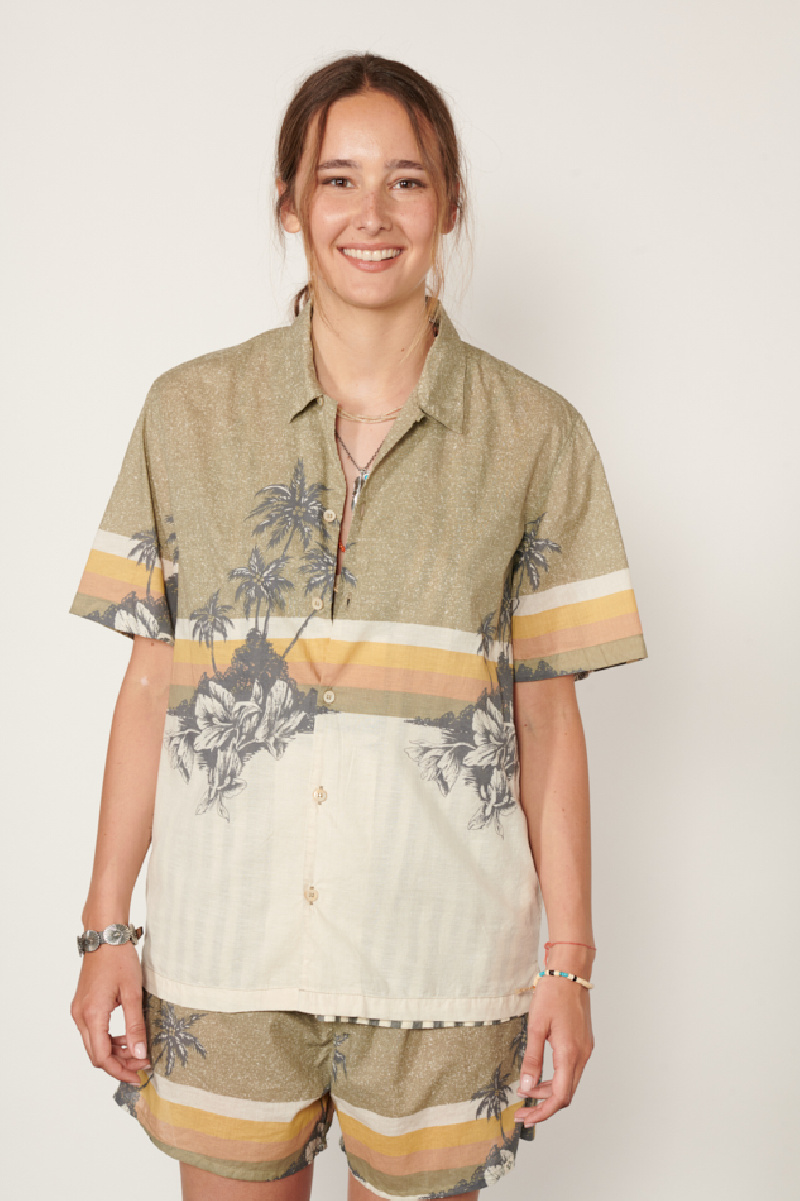 Cassidy shirt, short sleeves, cotton, Pacific color, decorated with floral motifs, from BSBEE.