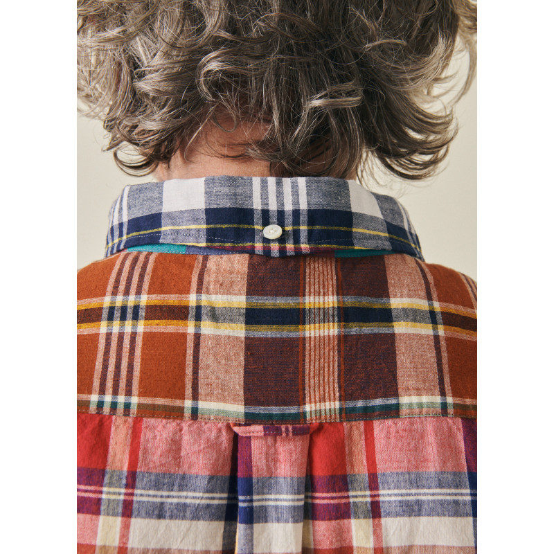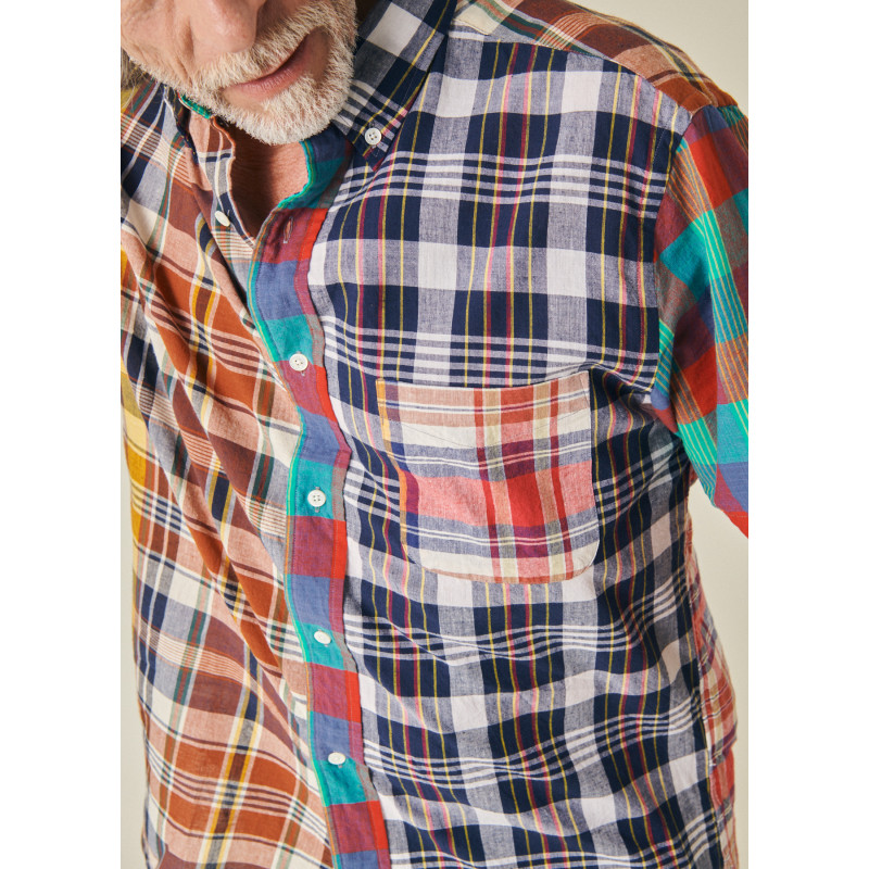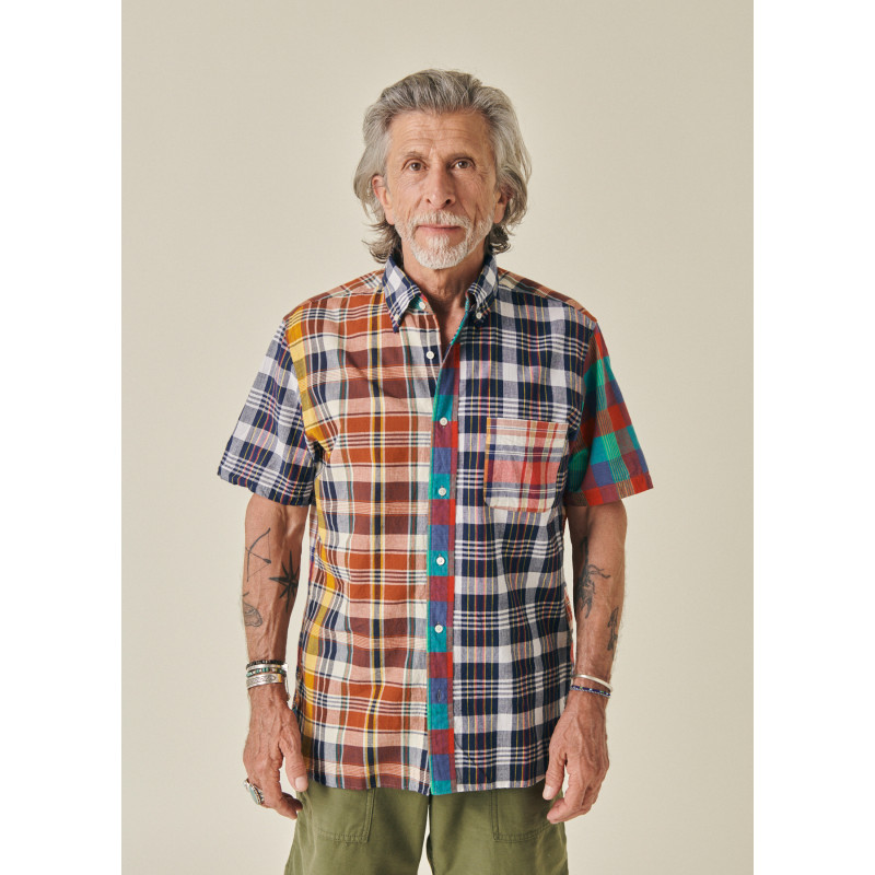 BEAMS+ shirt, check, multicolor, short sleeves, front pockets on left chest, pearly white button closure, classic collar, wide fit.