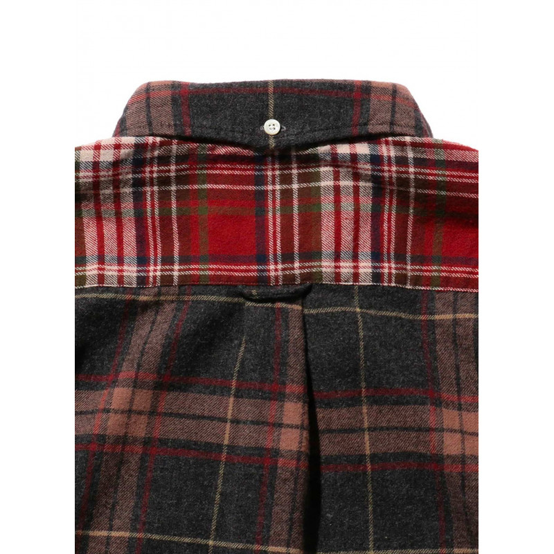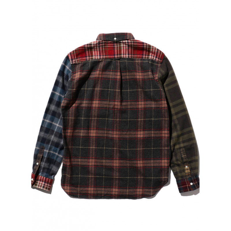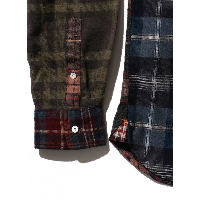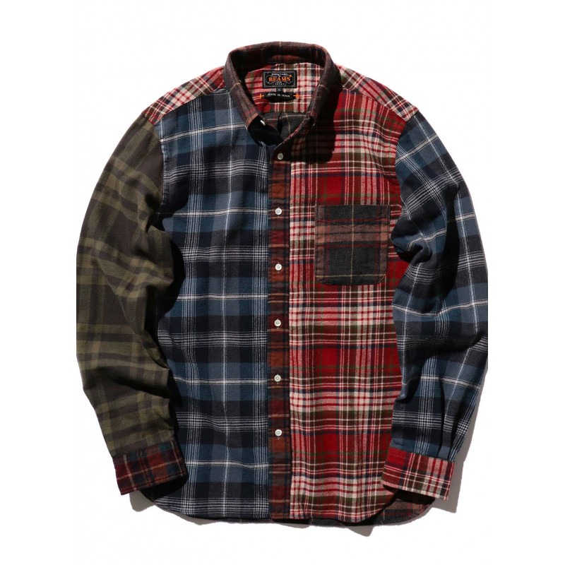 Shirt of the brand Beams, green, patchwork with checks of different colors on the right and left side, pocket at the chest, button closure, long sleeves, straight cut.