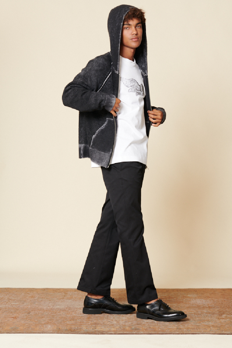 The black cotton trousers from Acne Studios feature a straight fit and regular length, side pockets and welt back pockets, button and zip fastening, a low rise, belt loops and a slightly thick fabric.