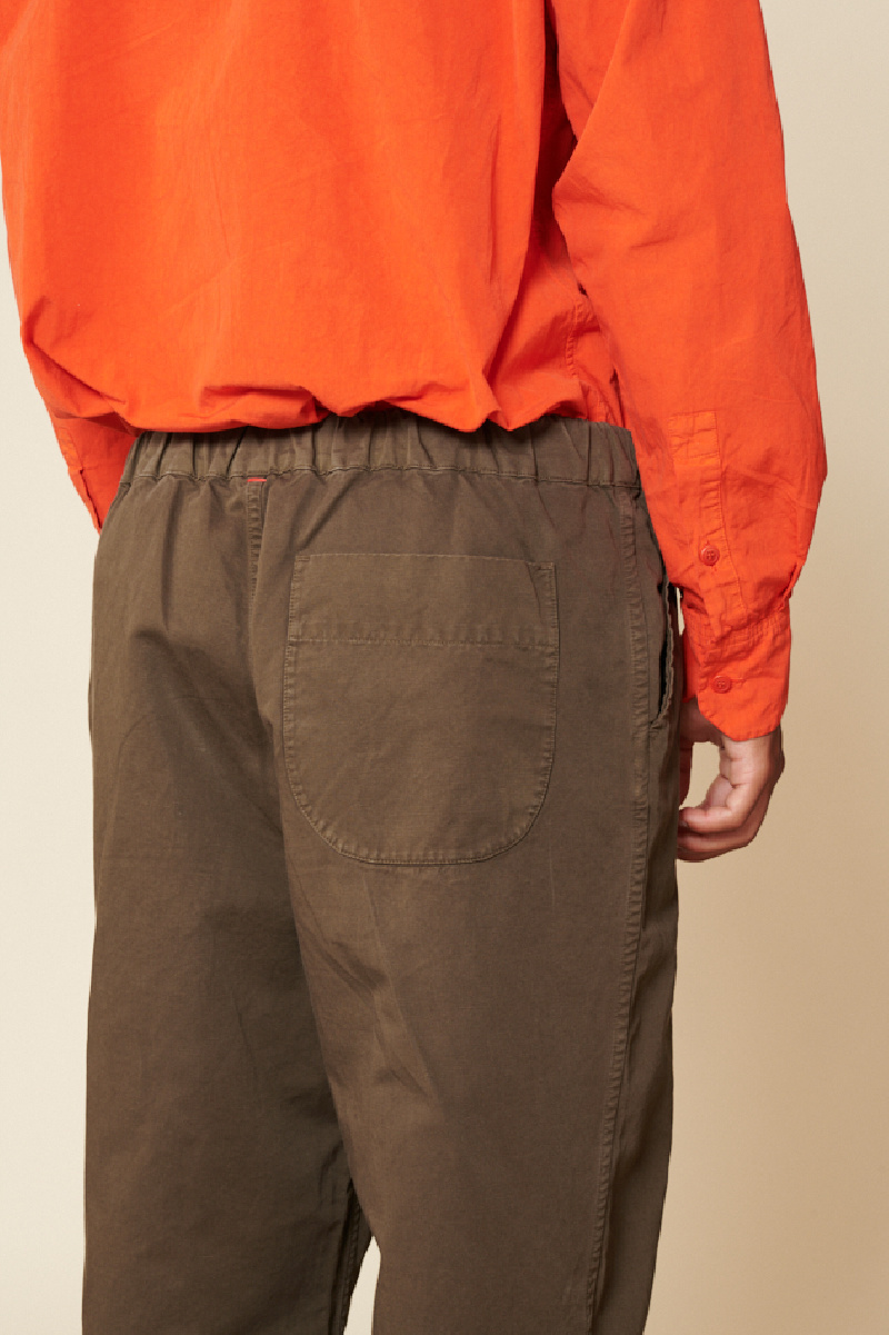 Fabi trousers in military twill by Casey Casey, khaki, straight cut, with deep side pockets and a single back pocket. Elasticated waist with drawcord for a comfortable fit.