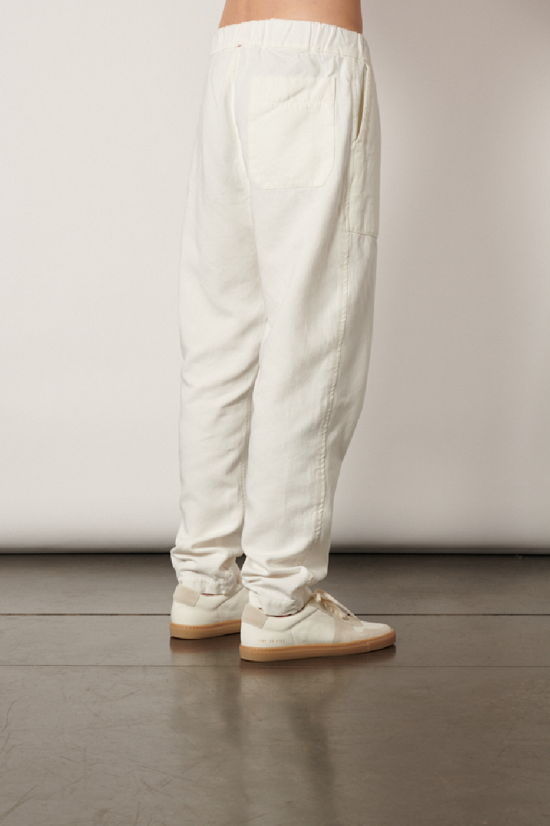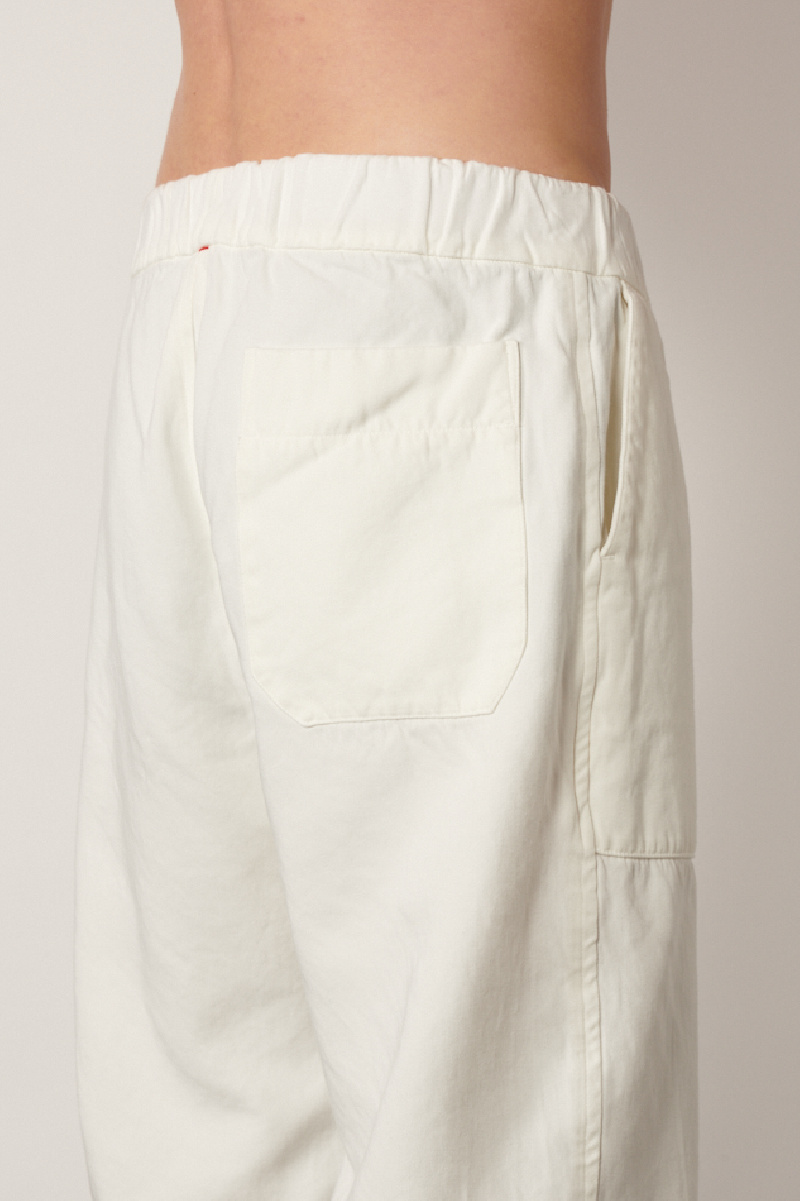 Pants made of paper cot off-white cotton, giving a slightly crinkle aspect, of the brand Casey Casey.