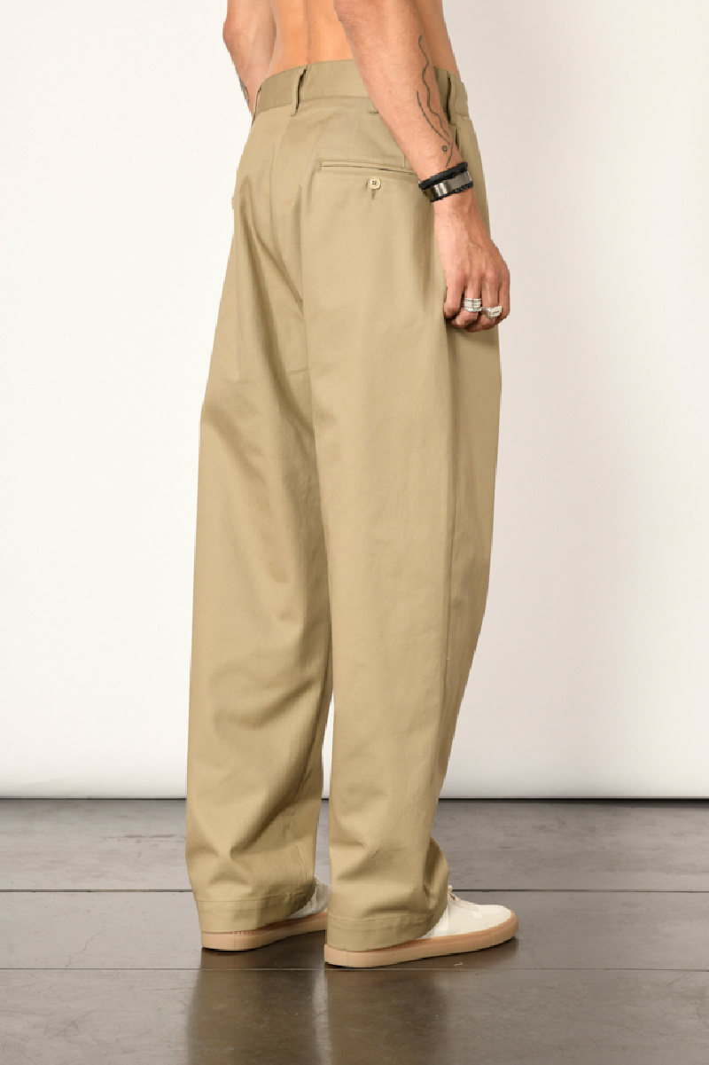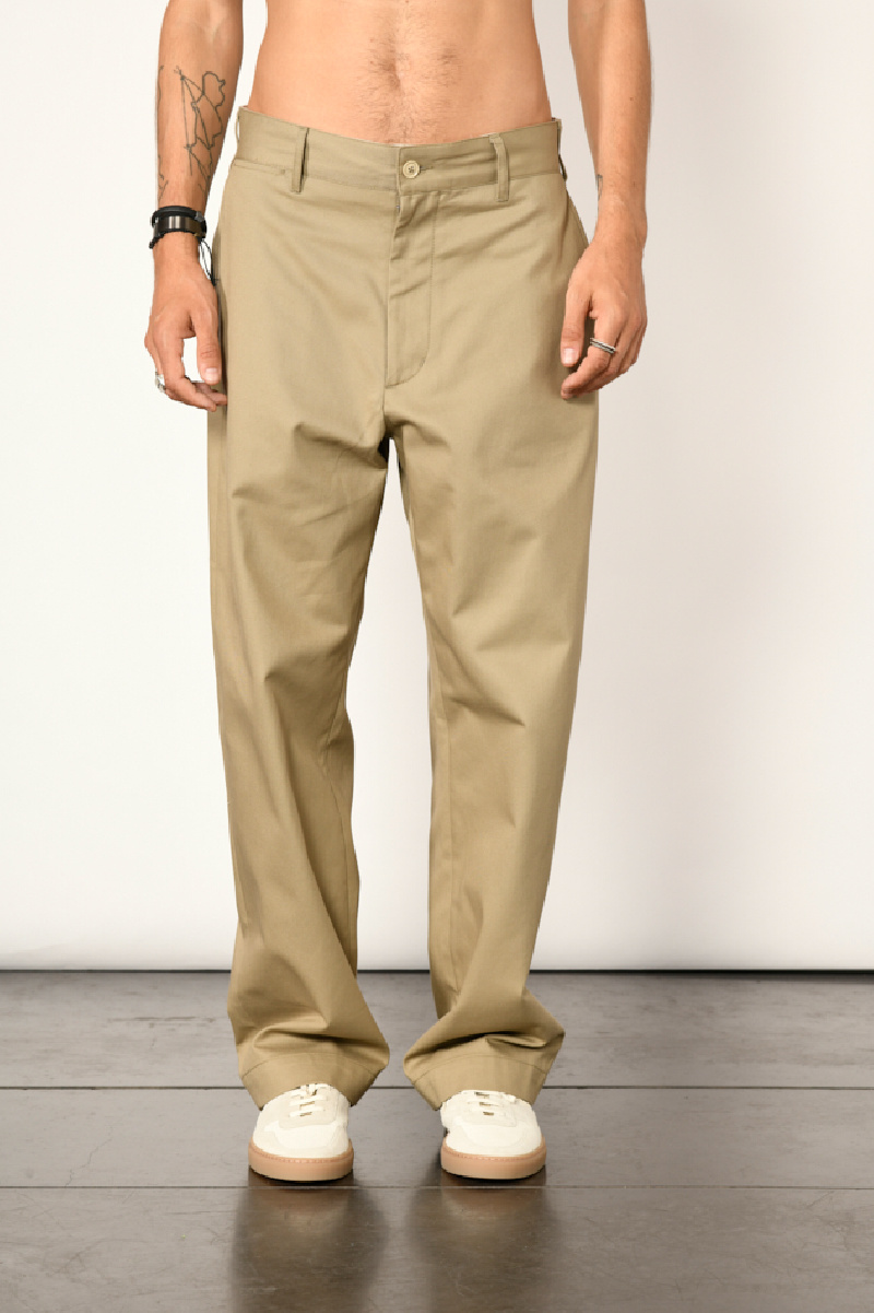 Khaki cotton twill pants, from the brand Enginereed Garments, Workaday line.