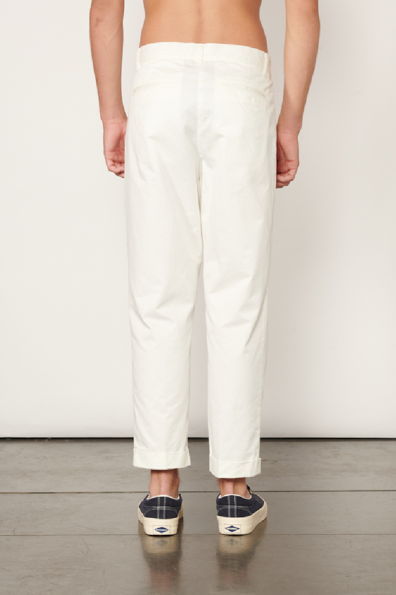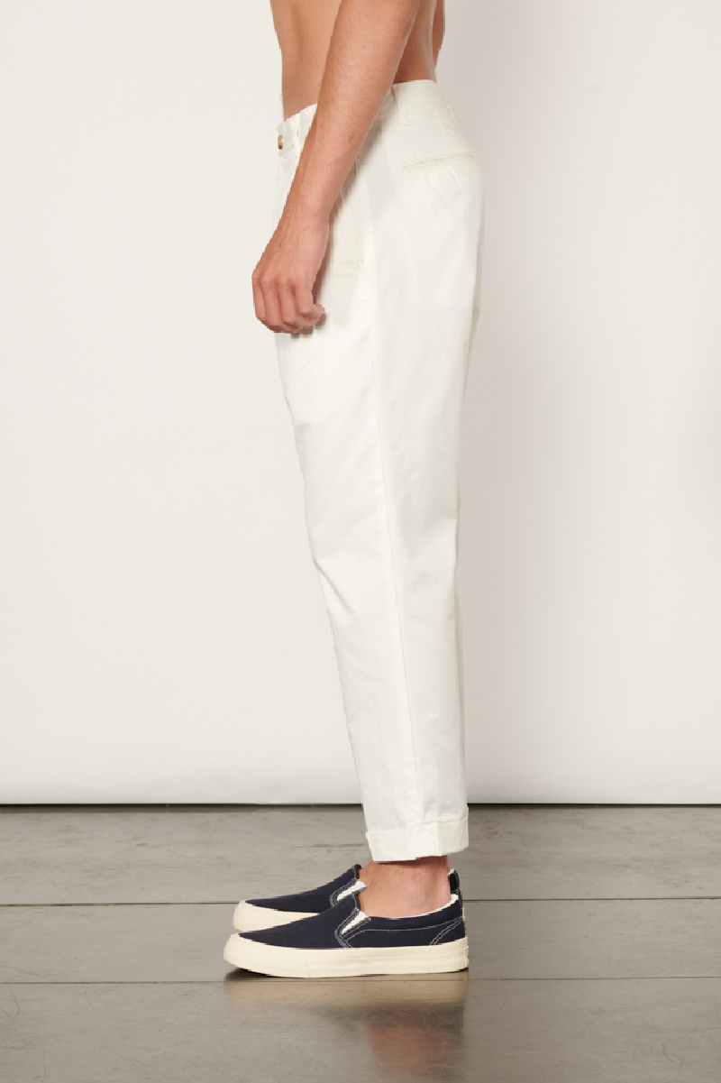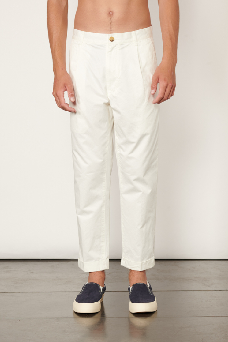 Off-white cotton twill pleated pants from Beams +.