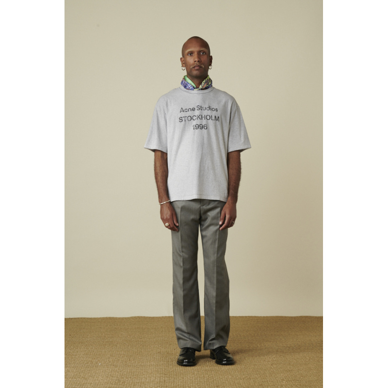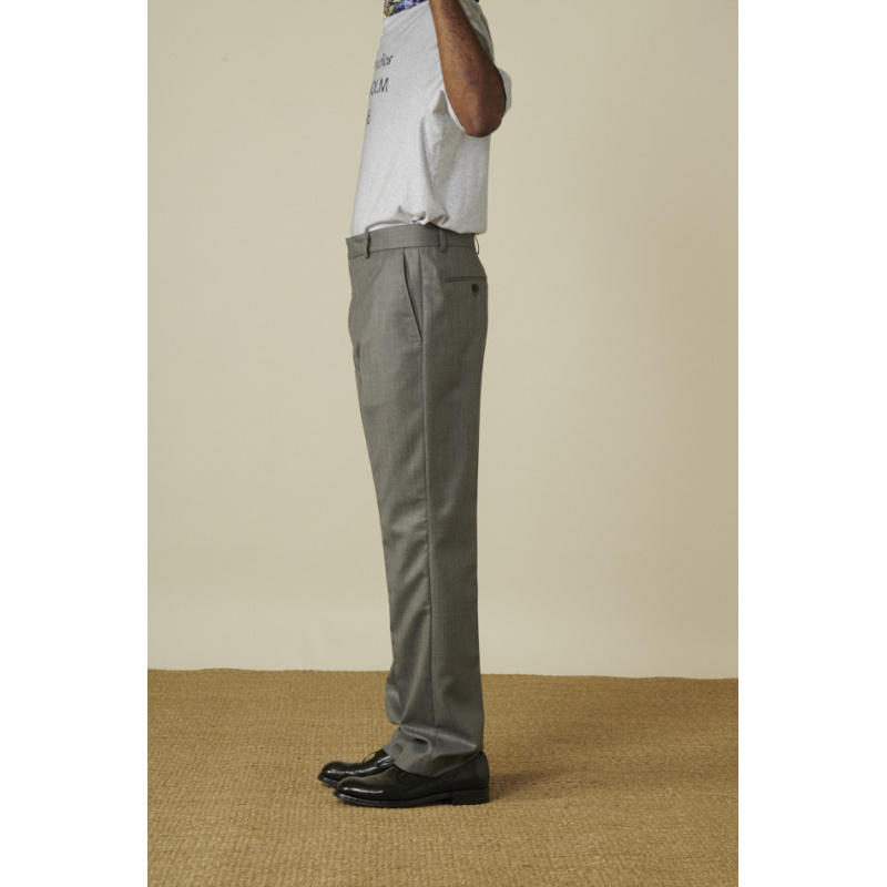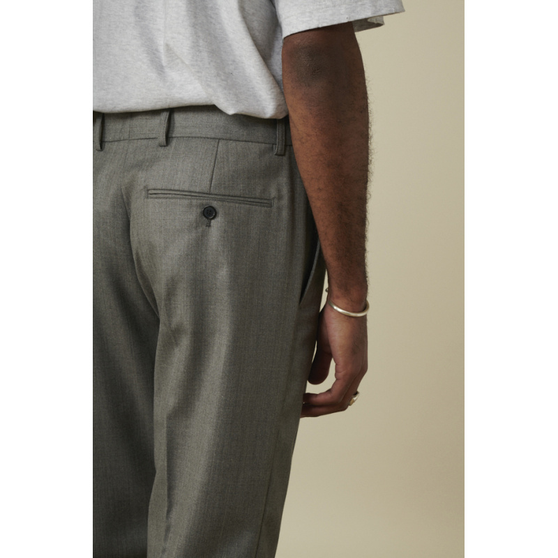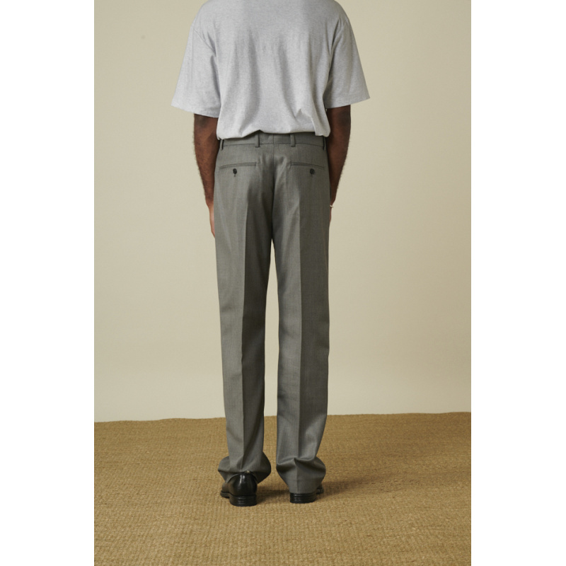 Grey tailoring pants by Acne Studios, straight cut with mid-rise waist, side and back pockets with two buttons on each side for closure, clip system for central closure, plus buttons to tighten pants further.