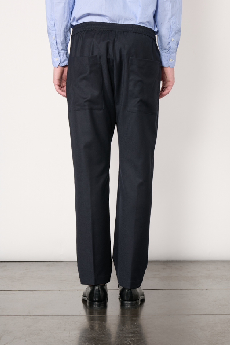 They feature a relaxed straight fit with an elasticated waistband and drawstring, patch pockets at the back, and side pockets in the seams.