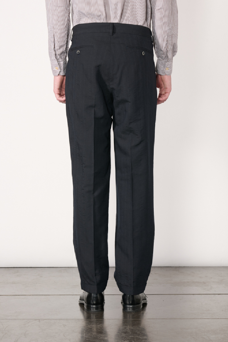Navy suit trousers made from a wool and viscose blend with a subtle striped weave, from the Barena brand.