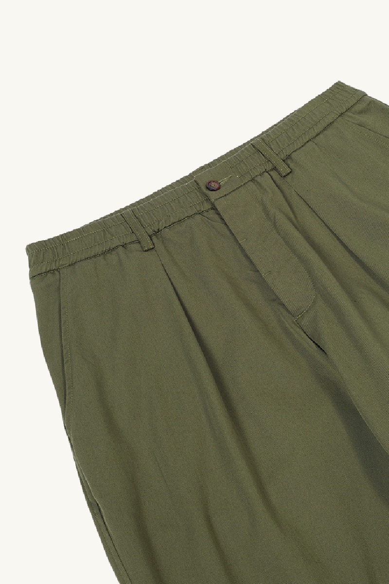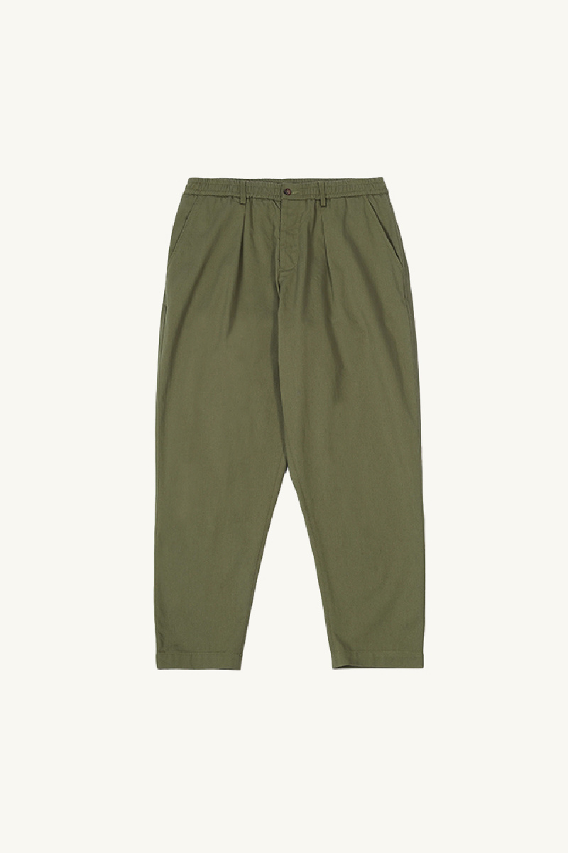 It offers a tapered cut with wide leg, an overstitched elasticated waistband with drawcord, pleat, and loops, two side pockets and two back pockets.