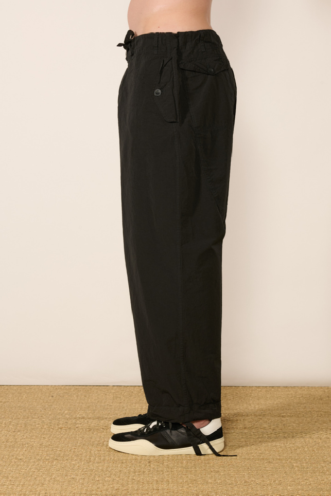 Abel trousers made from black Paper Cot cotton with a crinkled effect, by Casey Casey.