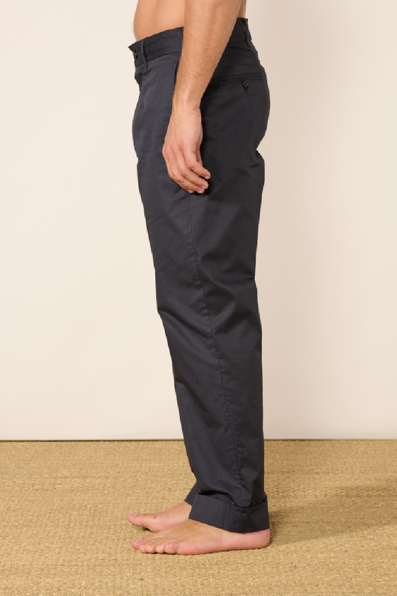 Andover Pant crafted from dark navy cotton twill by Engineered Garments.