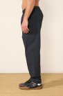 They feature a slightly tapered, comfortable fit, an elastic waistband adjustable with an internal drawstring, a button fly, discreet side pockets, and a back patch pocket.