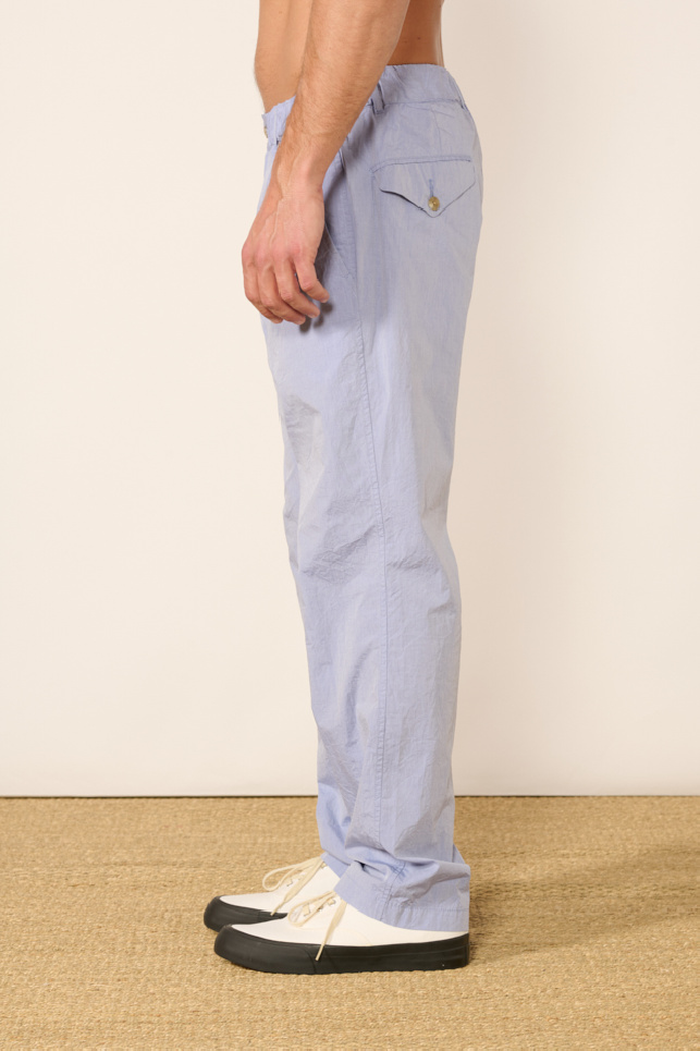 Blue trousers made of fine cotton with a crinkle effect, from the brand Sage de Crêt.