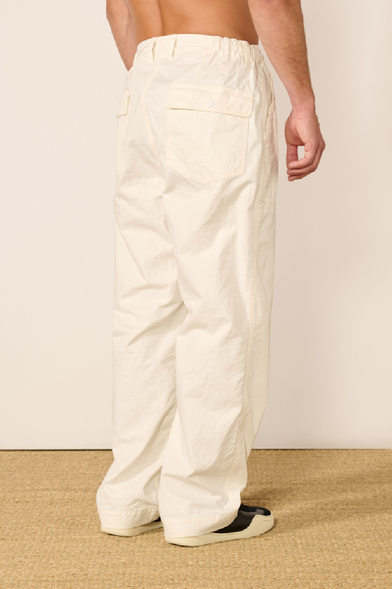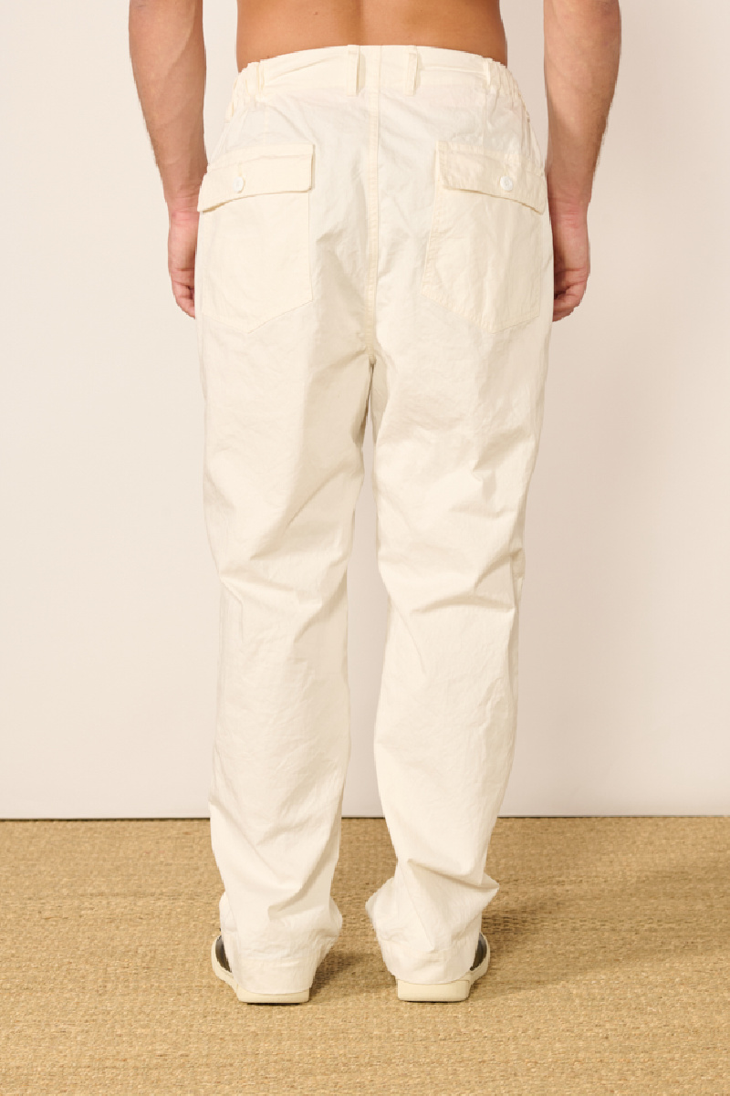 Chino trousers in off-white crinkled cotton by Sage de Crêt.