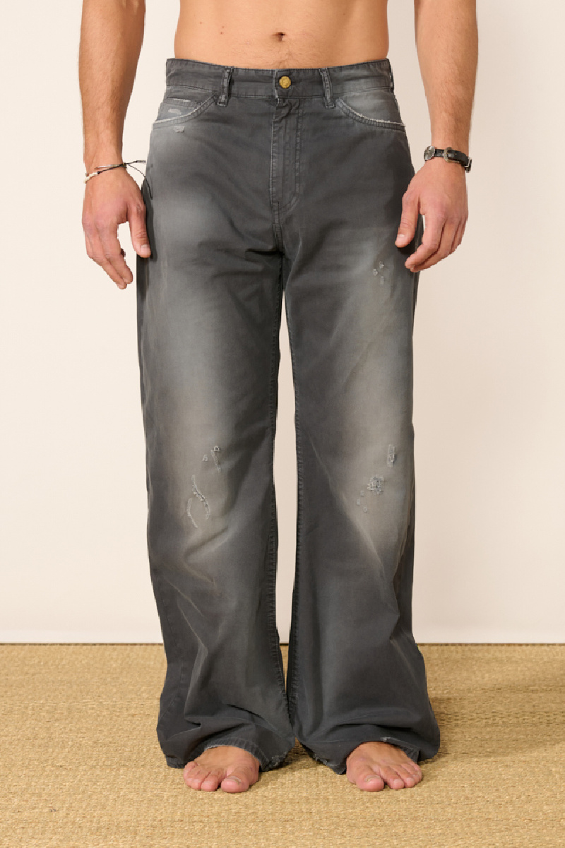 They feature a relaxed wide-leg fit with a classic five-pocket construction and a zip fly closure.