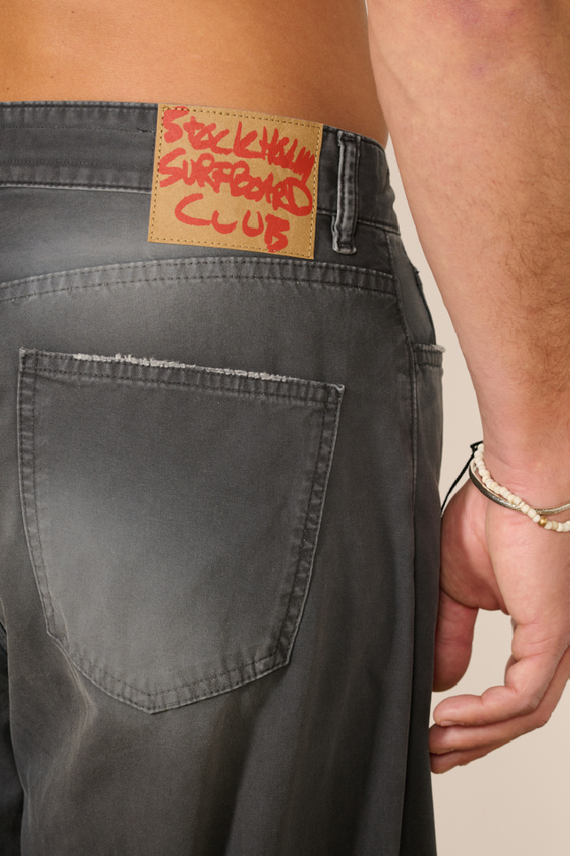 Chino trousers in washed black cotton by Stockholm Surfboard Club.