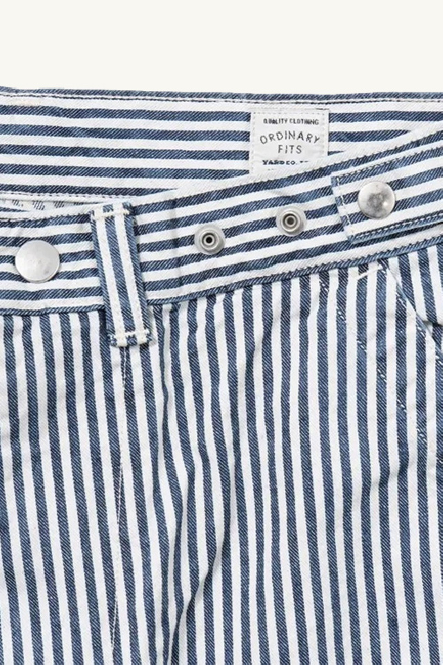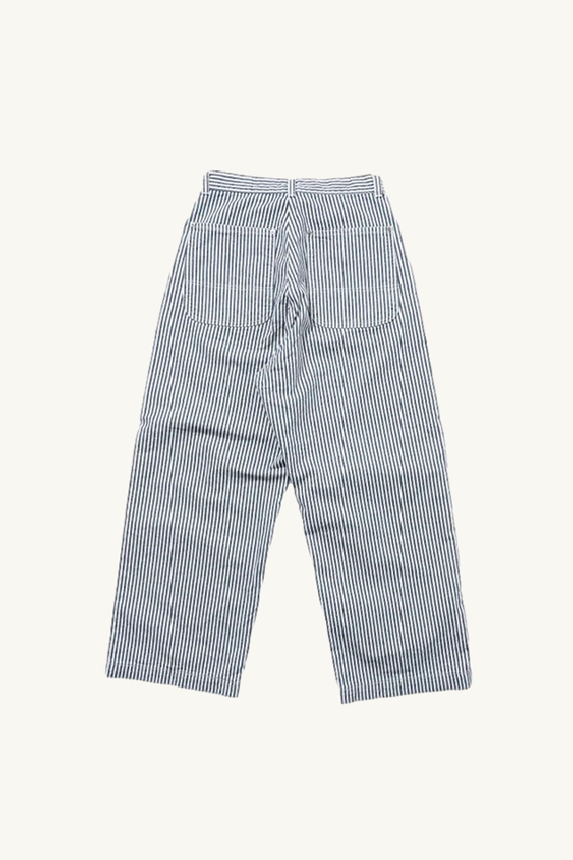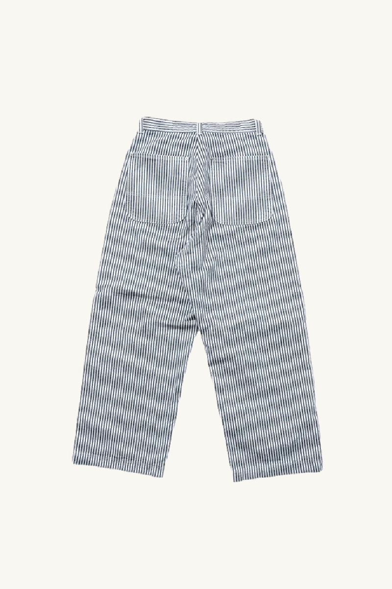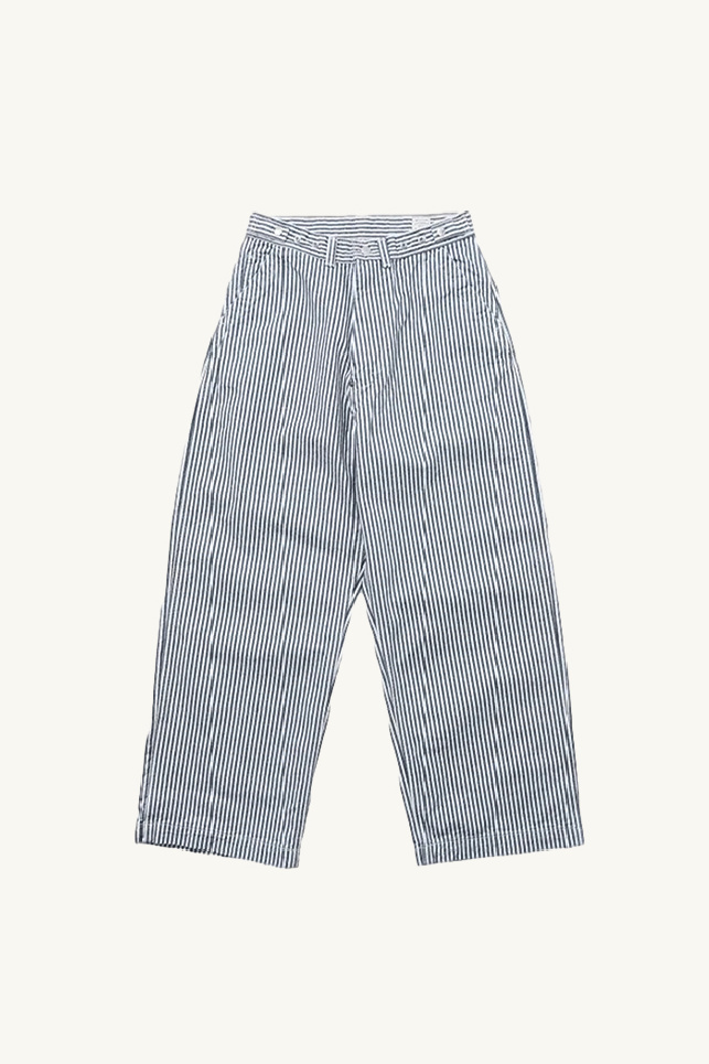 Bell trousers made of ivory cotton with navy stripes, from the brand Ordinary Fits.