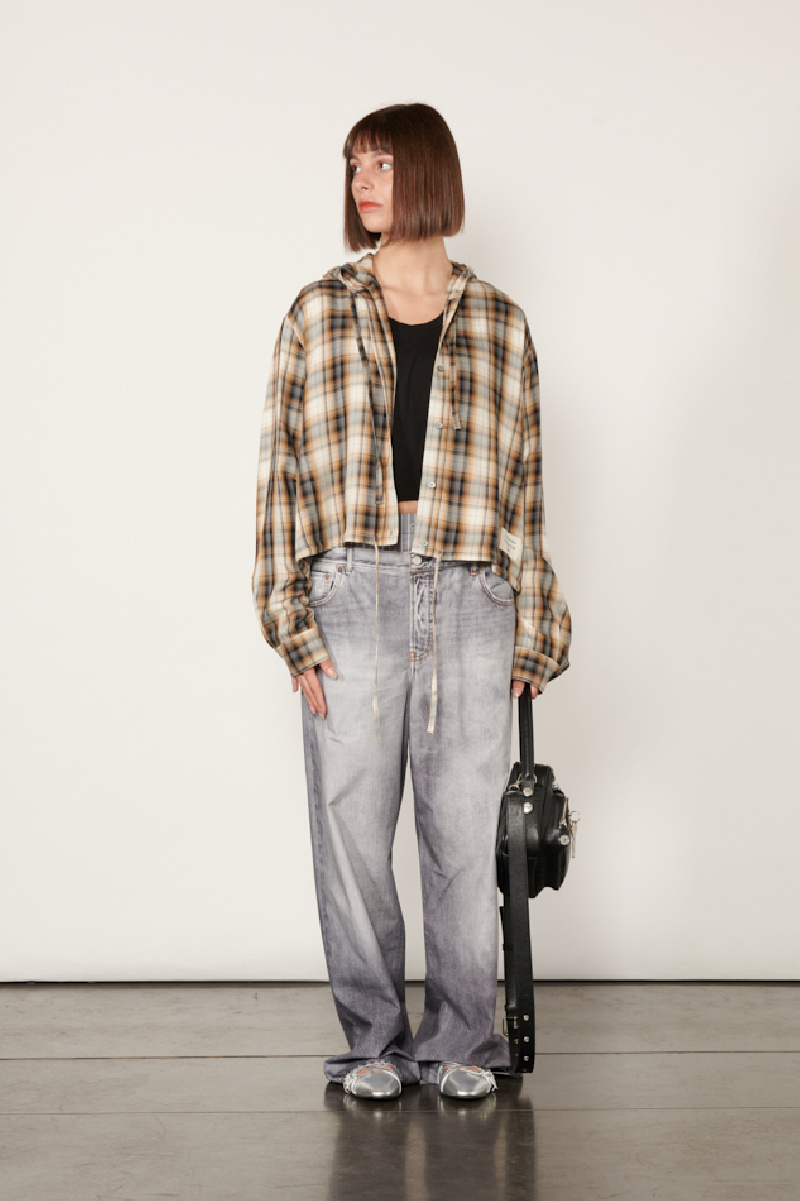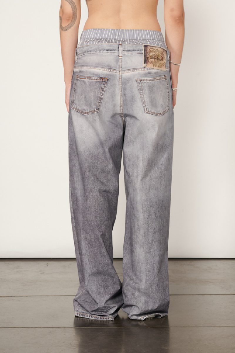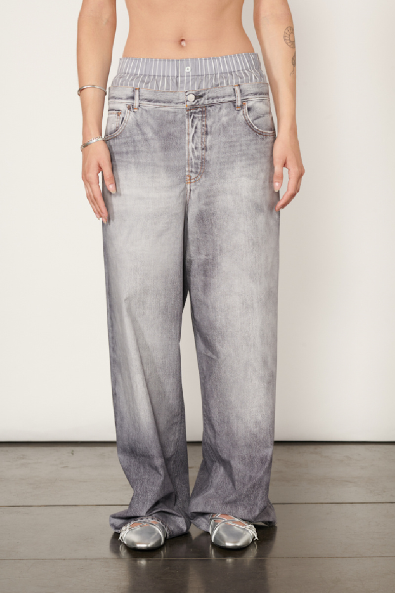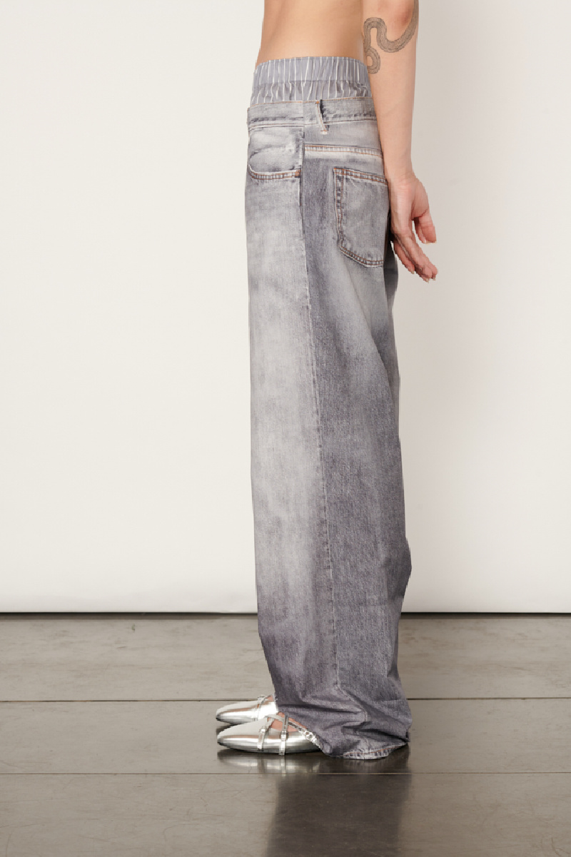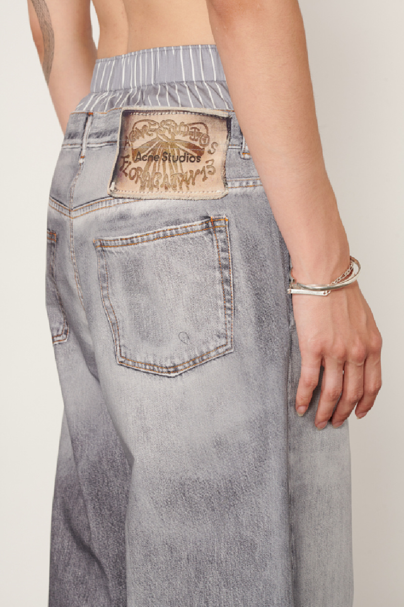 Loose-fitting pants in organic cotton poplin, adorned with a denim-inspired trompe-l'oeil print in gray by Acne Studios.