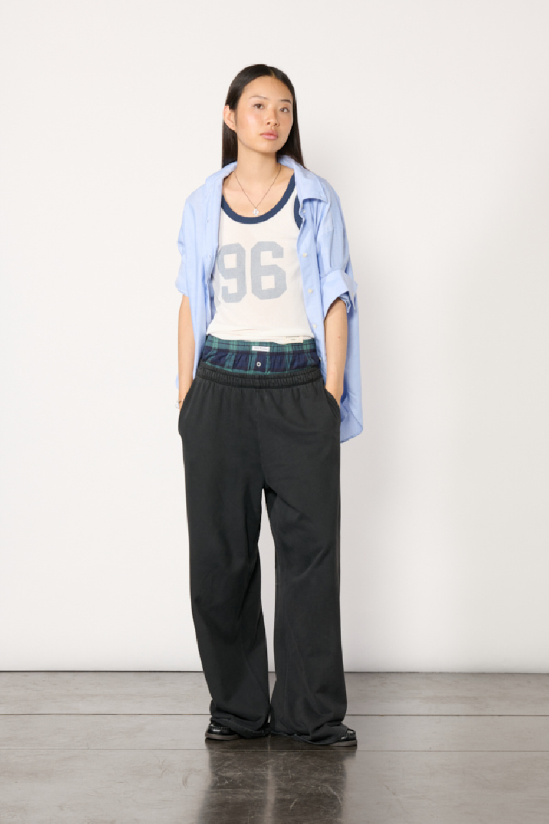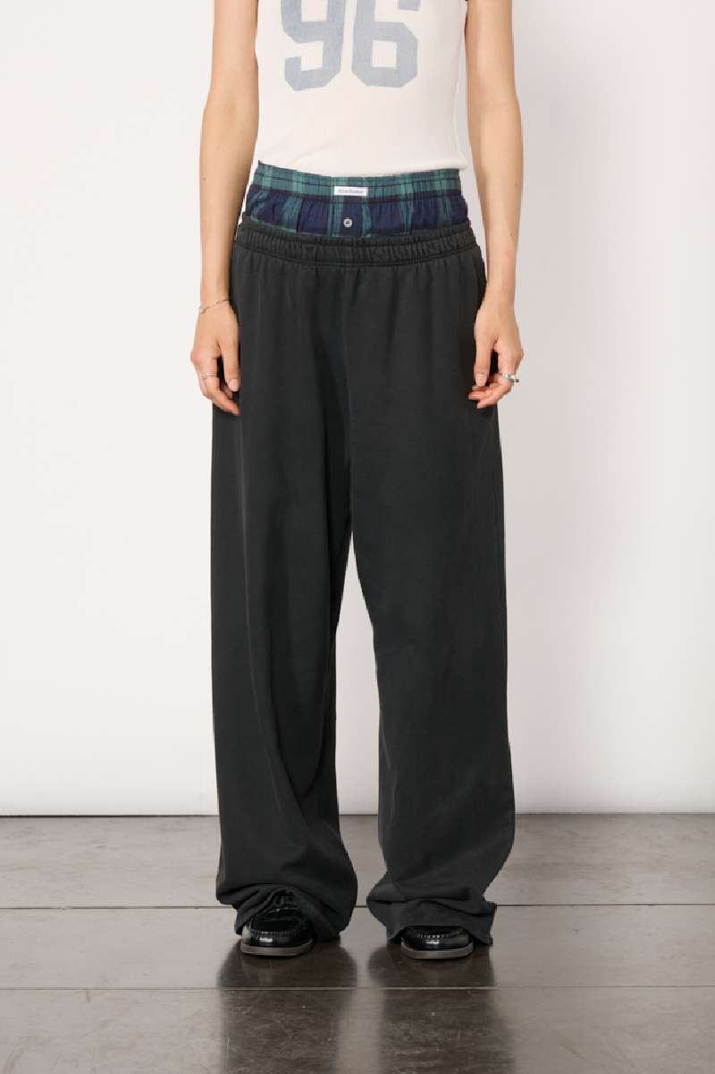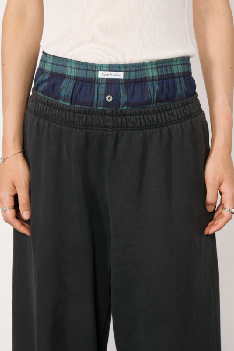 Black cotton joggers with integrated checked boxer shorts from Acne Studios.