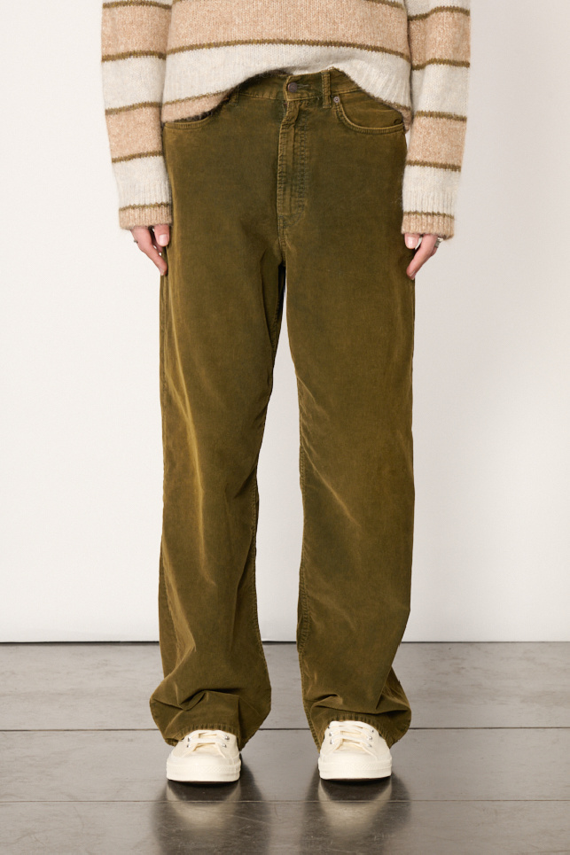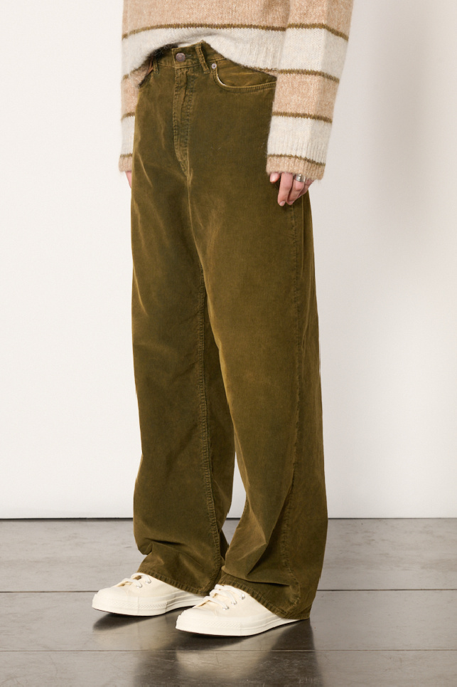 Olive fine corduroy trousers with a vintage wash, made from organic cotton by Acne Studios.