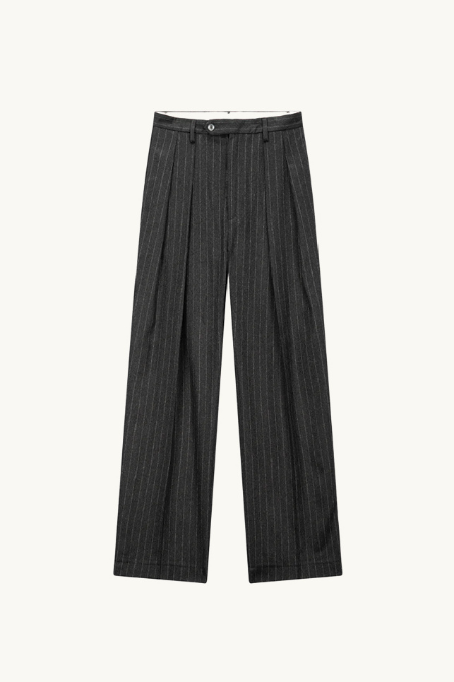 They feature a classic cut with double pleats and wide legs. Made from a soft blend of virgin wool and cashmere, and enhanced with an exclusive striped pattern designed for Barena Venezia, they combine timeless elegance with refined comfort.